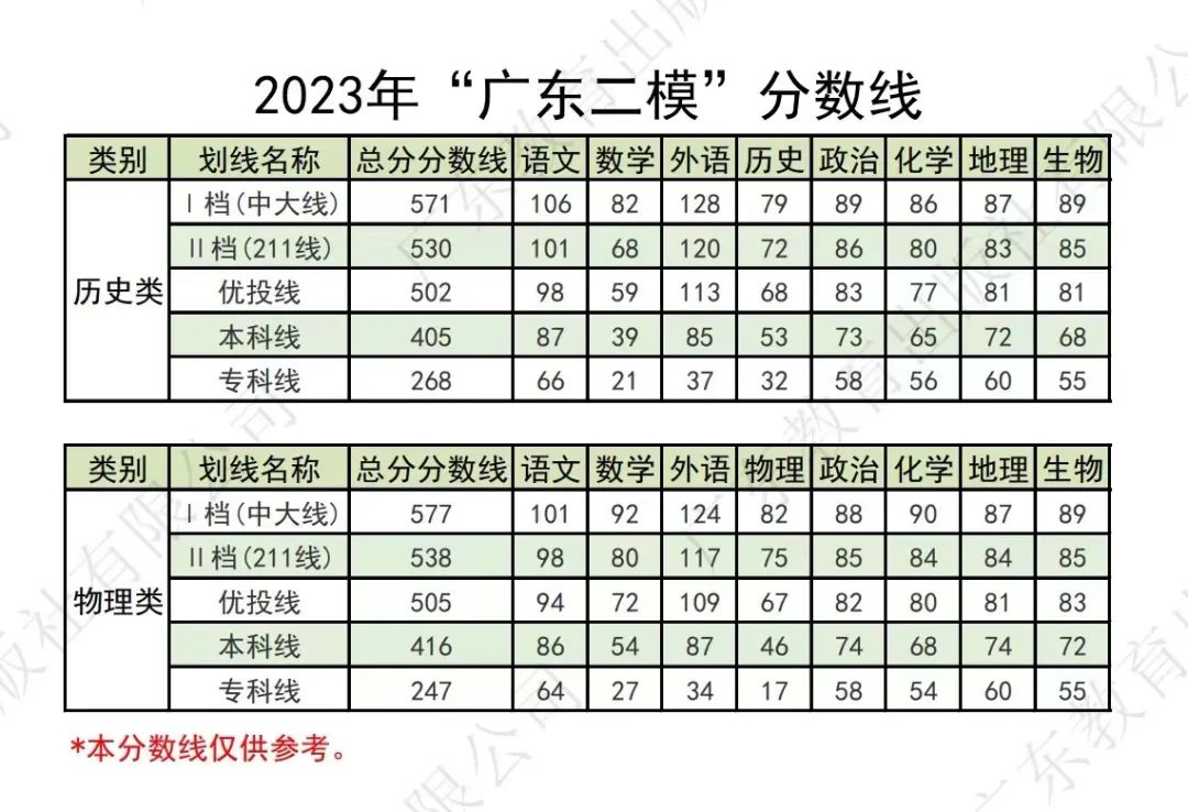 2024年广东二模考试分数线已经出炉,由广东教育出版社公布的2024广东二模各科分数线如下: