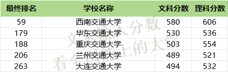 2024年全国大学排名第41,交通大学排名第3,最低分为理科587分、文科573分。