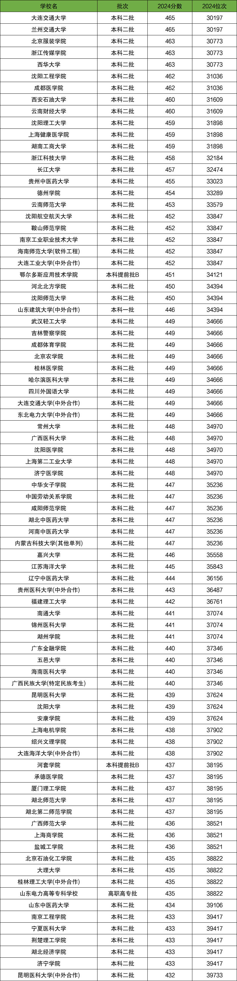 1、465分对应位次30197。有大连交通大学、兰州交通大学。