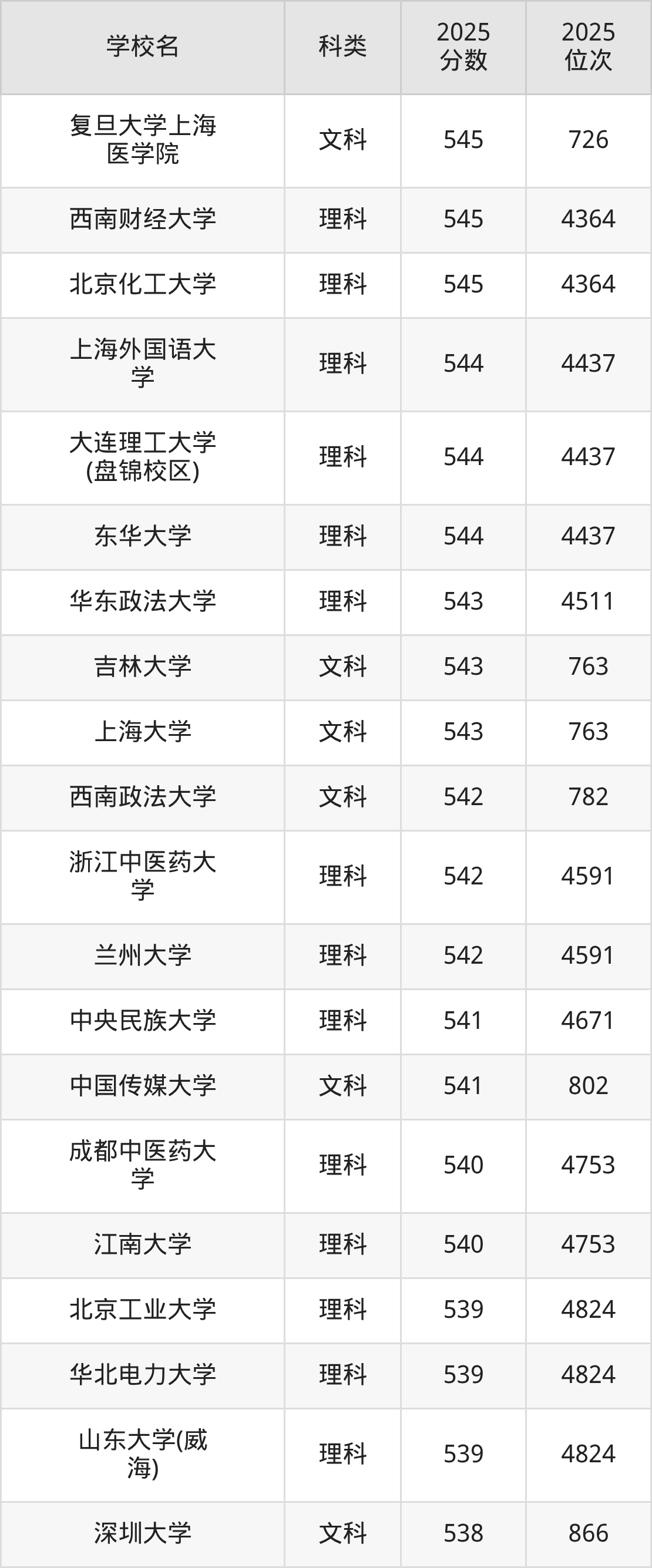 本文将收集各省545分能上的一本大学位次排名表(不含特殊招生计划、中外合作、分校区等),以供2026届考生参考。
