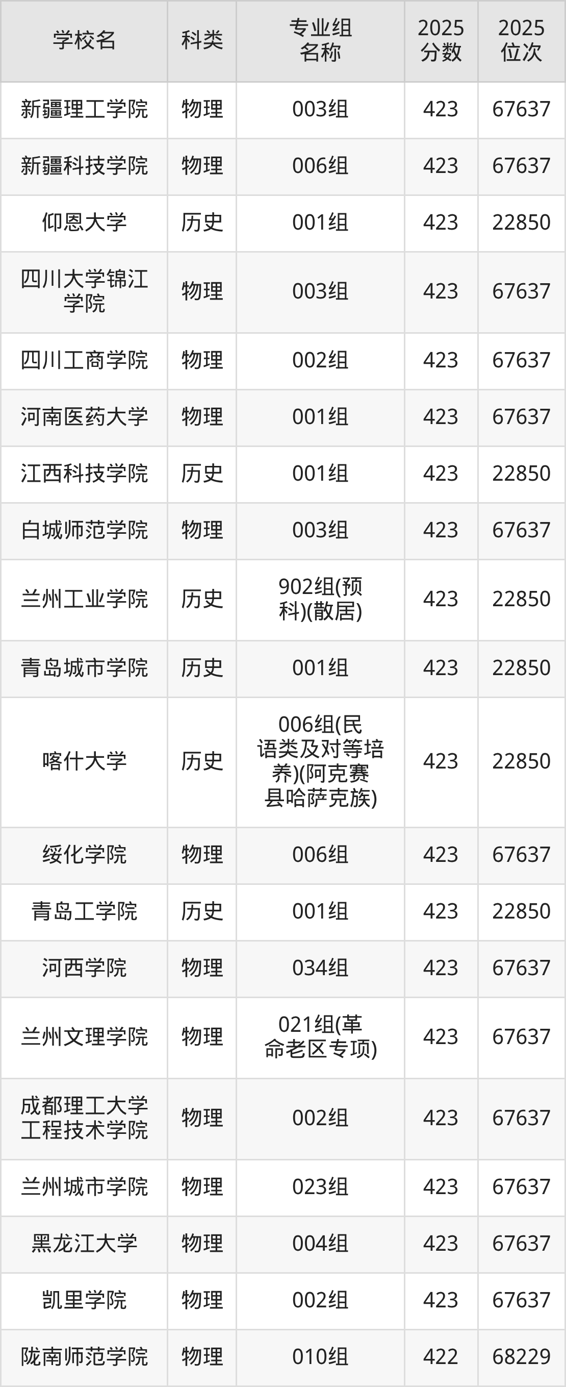 同分数公办本科大学还有喀什大学(位次49276名)、伊犁师范大学(位次49276名)、新疆理工学院(位次49276名)等,适合市排名在4.9万名开外的本科生报考。