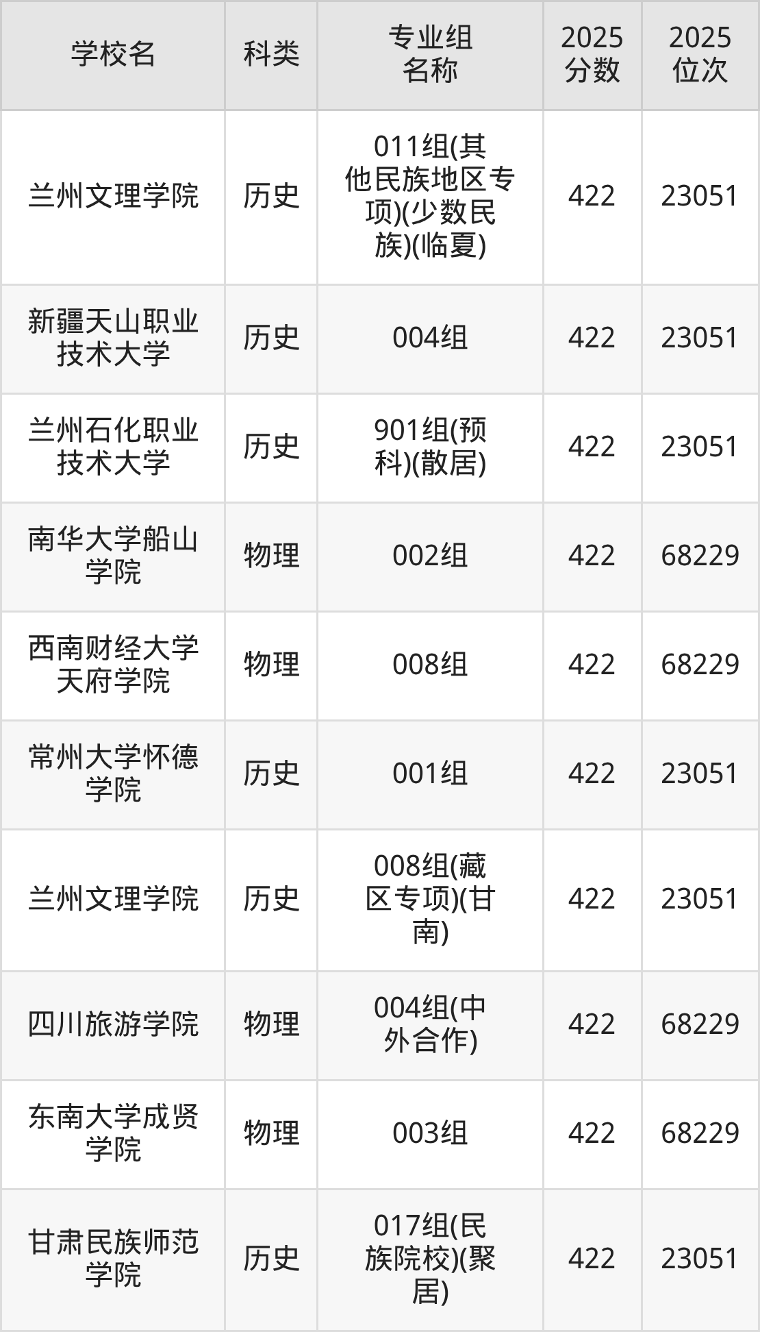 2025年甘肃物理类本科线为374分,424分能上的本科大学共计334所,其中公办大学录取位次排名最低的是南通大学(006组374分,位次93788名),即代表考生省排名位次在93788名及以内就可以报考公办本科。
