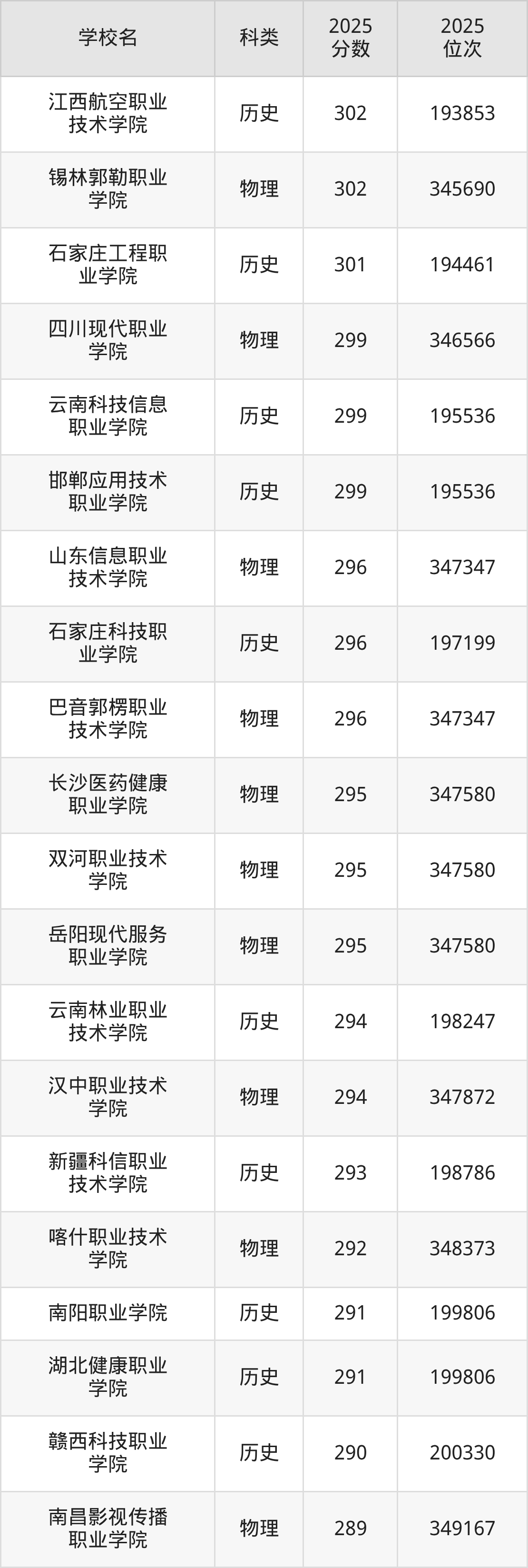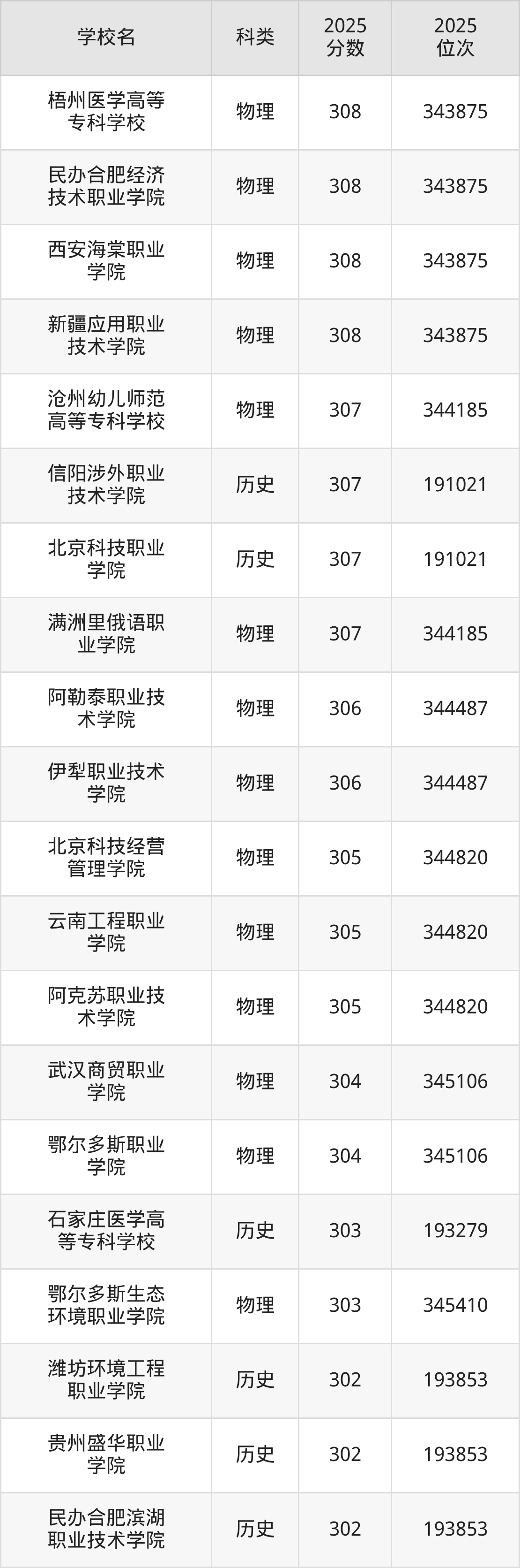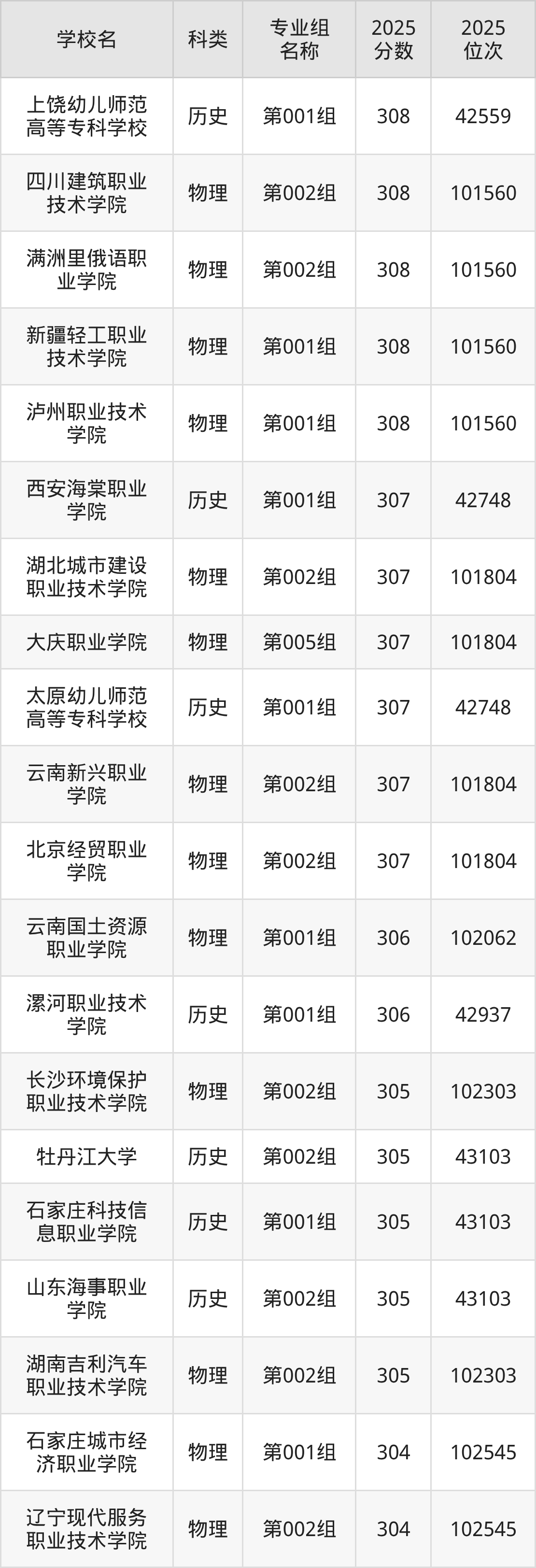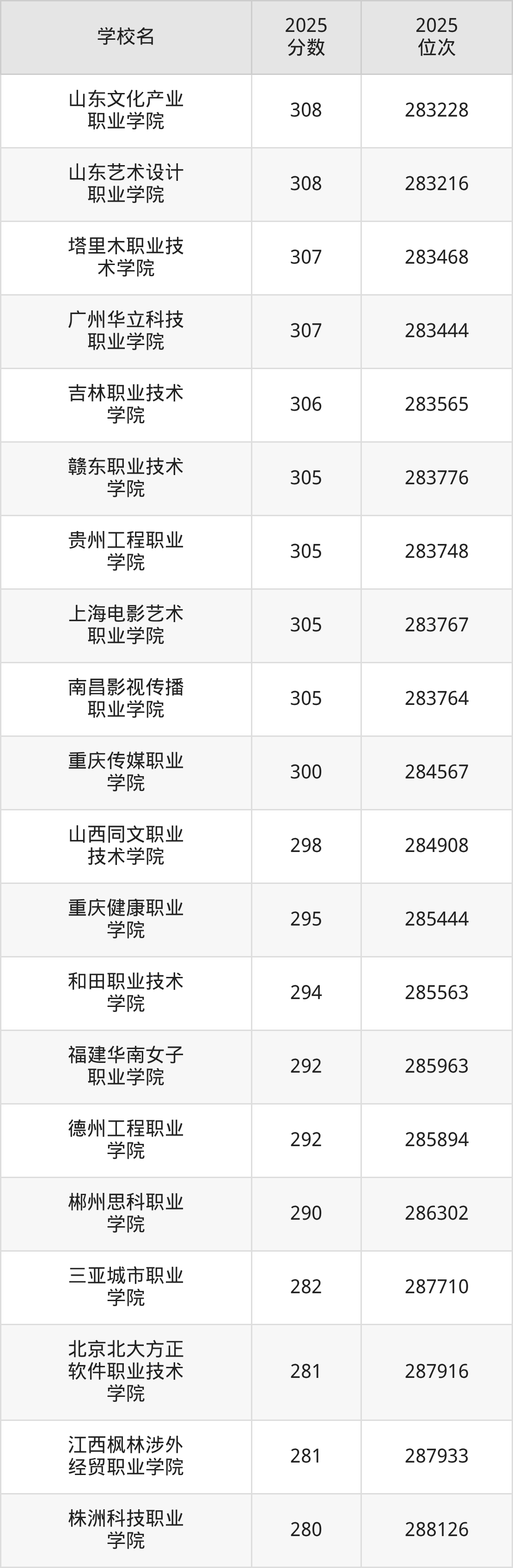 本文将收集各省308分能上的专科学校位次排名表(不含特殊招生计划、中外合作、分校区等),以供2026届考生参考。