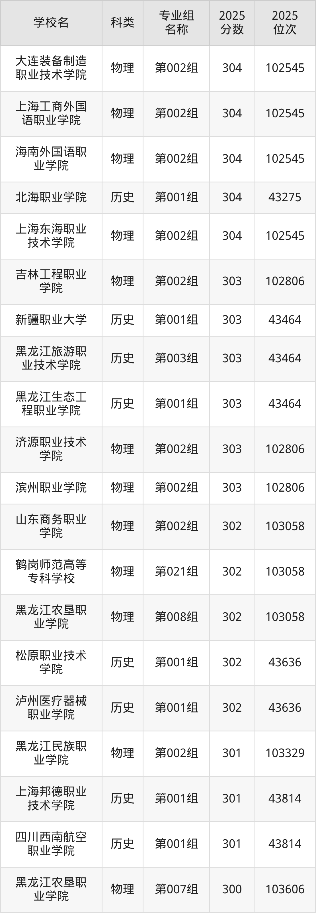 下面是黑龙江308分能上的专科学校排名Top50一览表: