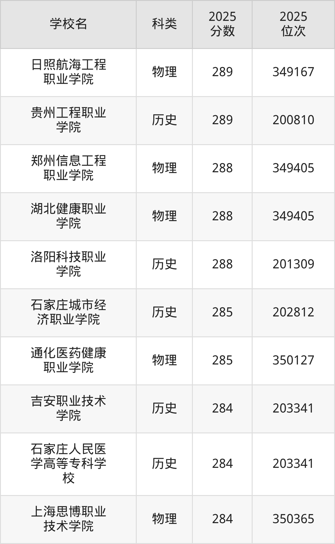 二、河北308分能上的专科学校排名表