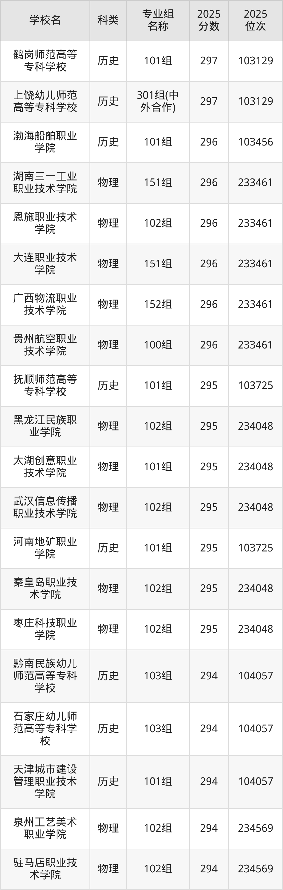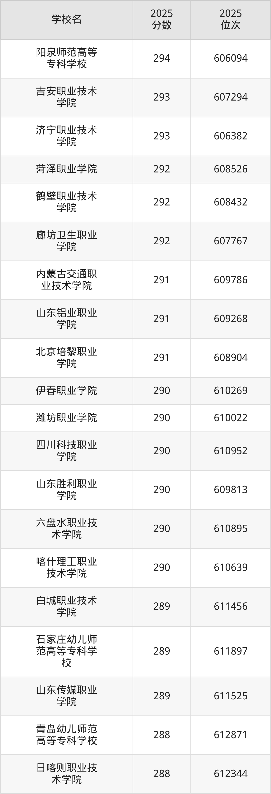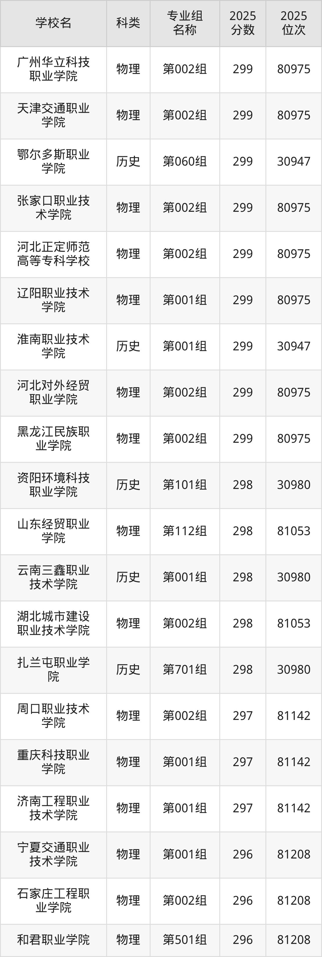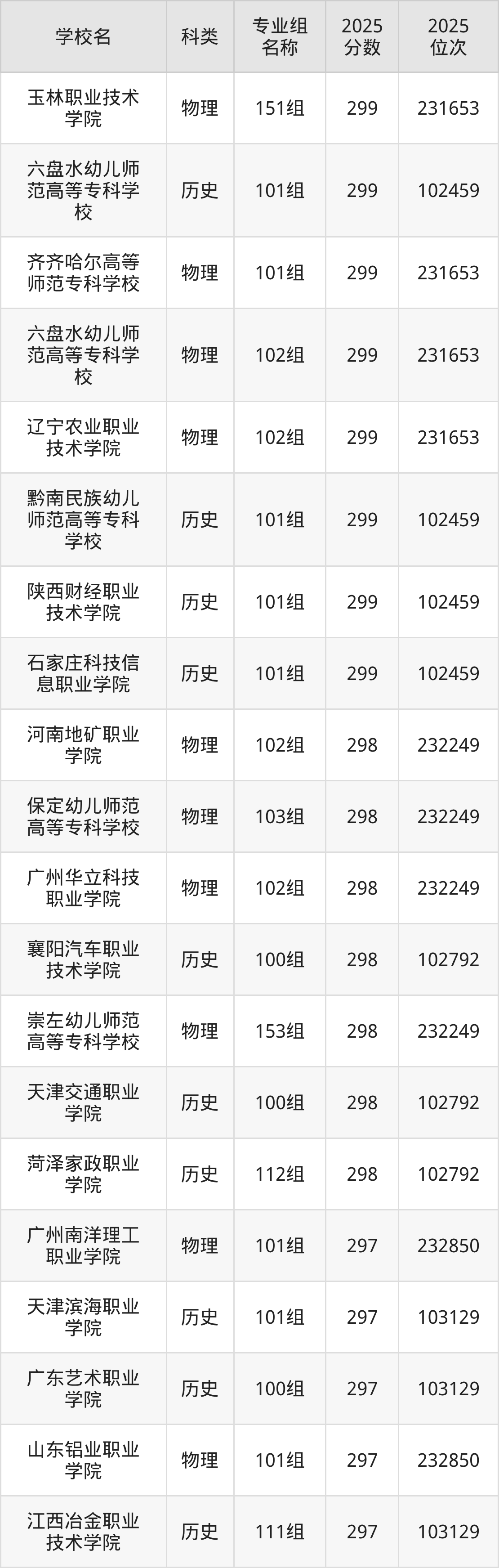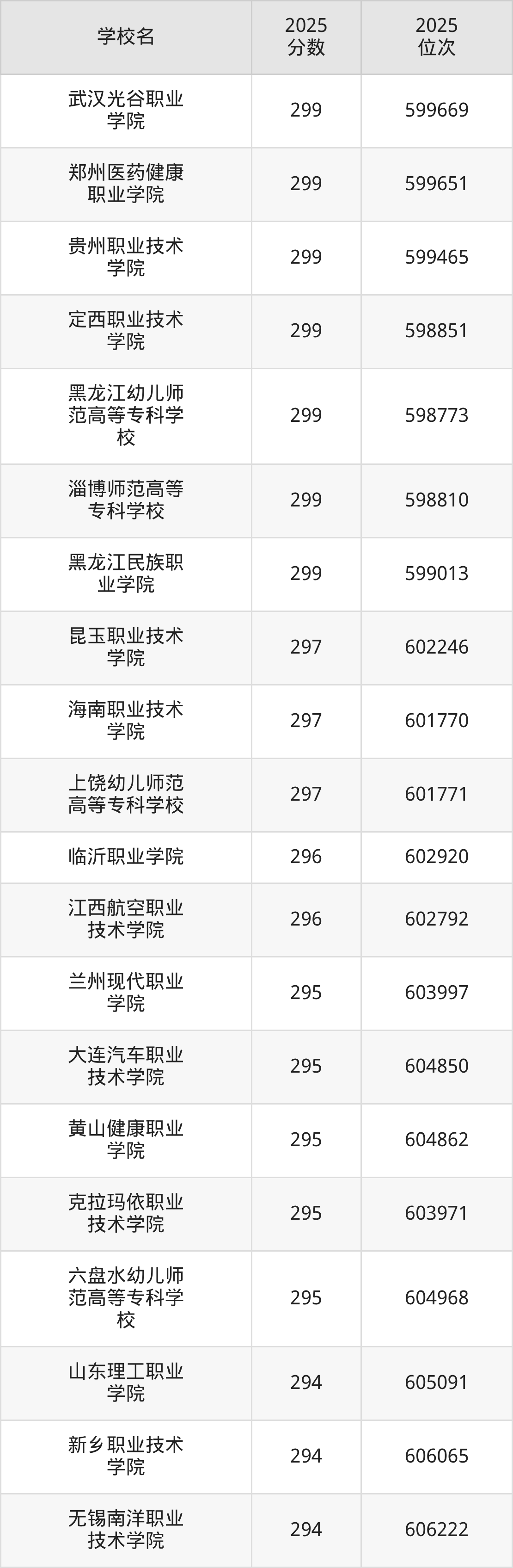 本文将收集各省299分能上的专科学校位次排名表(不含特殊招生计划、中外合作、分校区等),以供2026届考生参考。