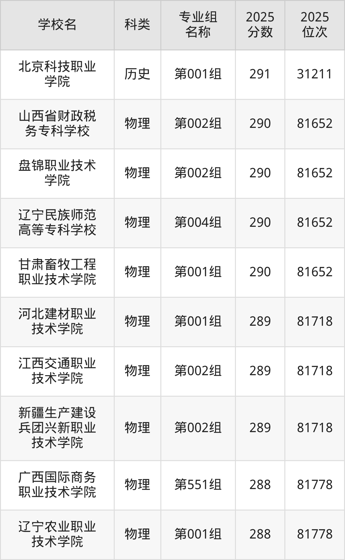 除上述院校外,299分可上的公办专科学校还有黑龙江幼儿师范高等专科学校(第002组224分,位次32487名)、内蒙古交通职业技术学院(第005组215分,位次83656名)。