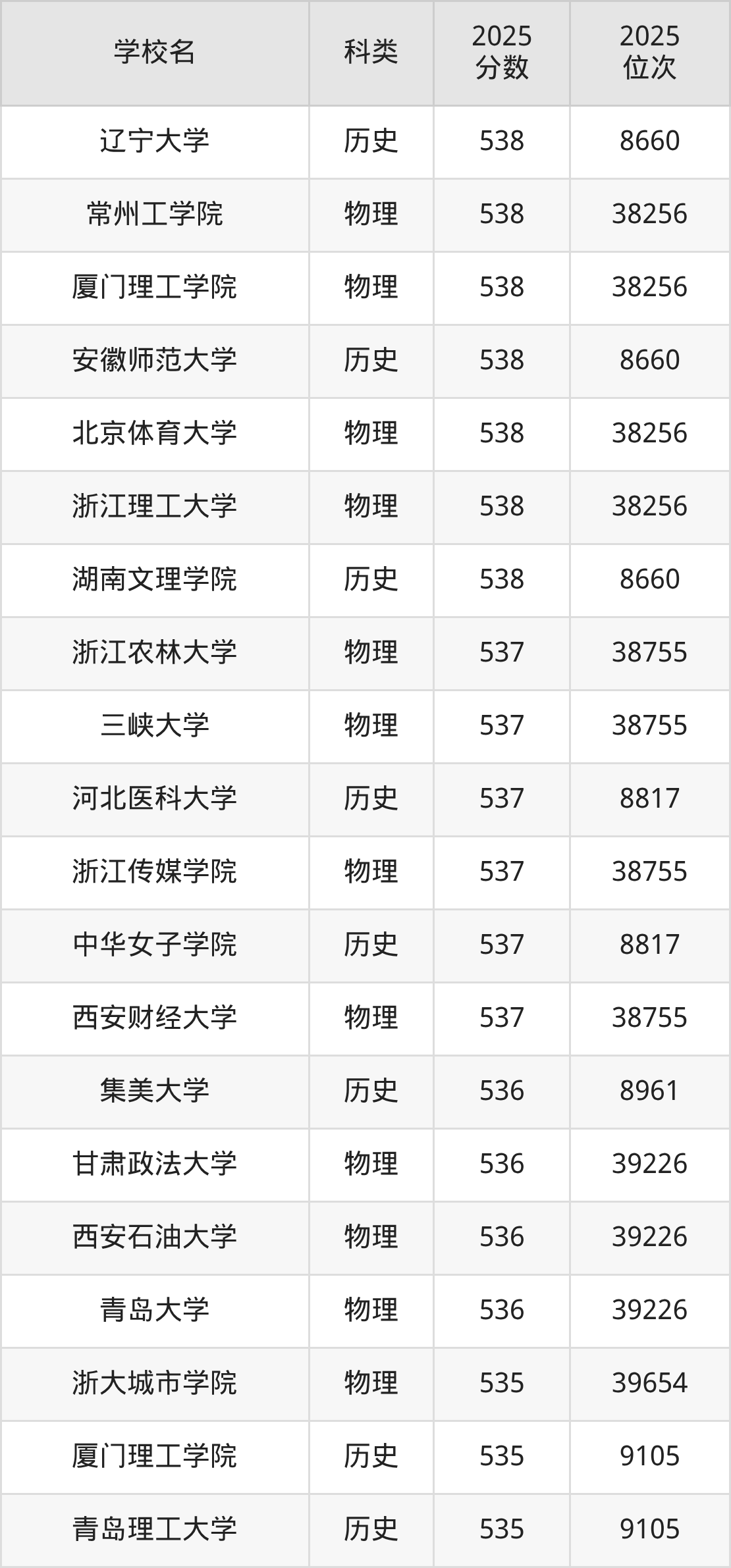本文将收集各省538分能上的本科大学位次排名表(不含特殊招生计划、中外合作、分校区等),以供2026届考生参考。