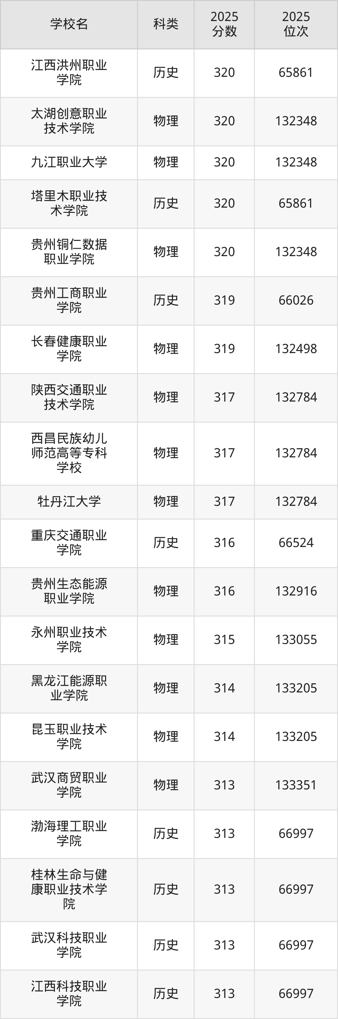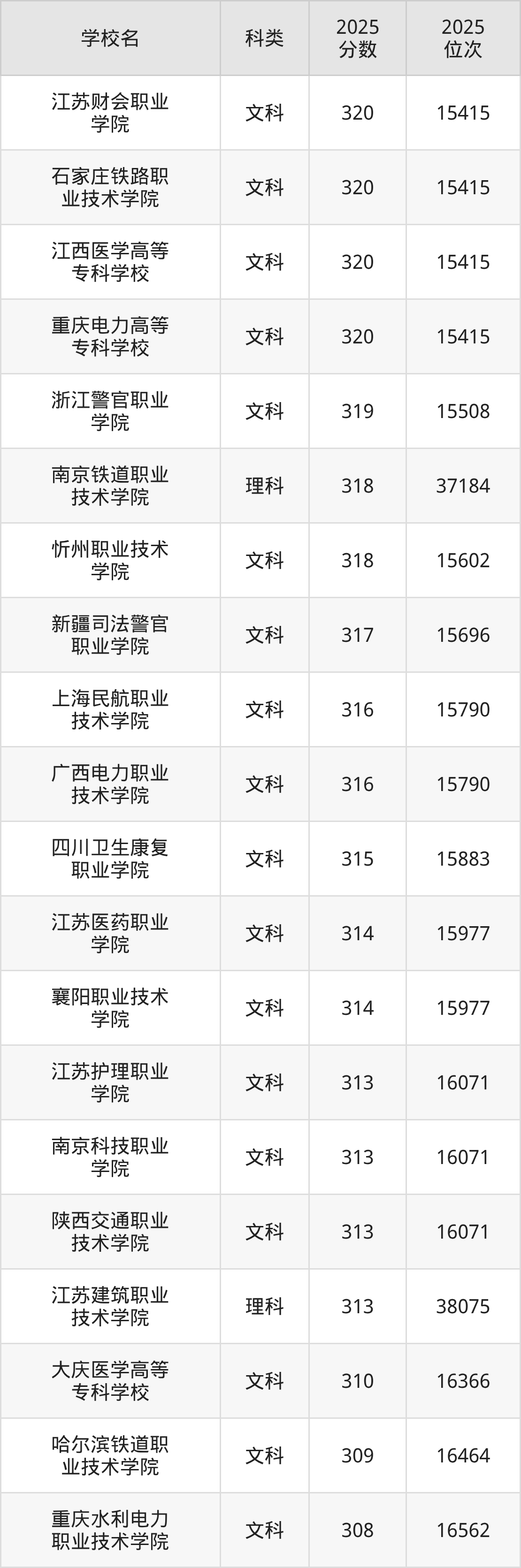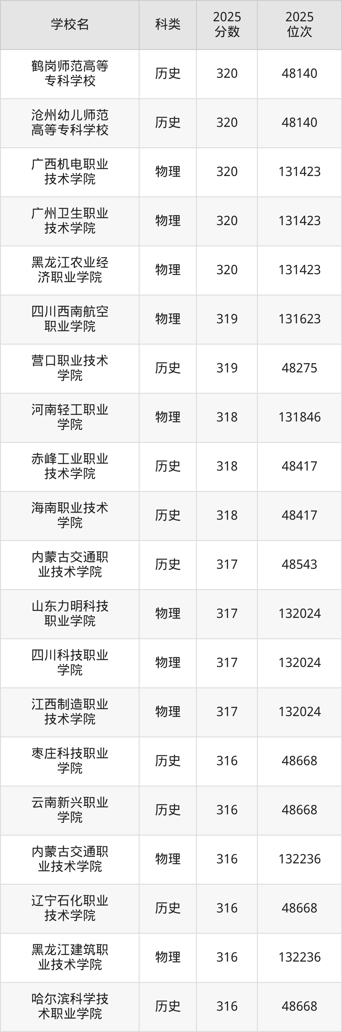 本文将收集各省320分能上的专科学校位次排名表(不含特殊招生计划、中外合作、分校区等),以供2026届考生参考。