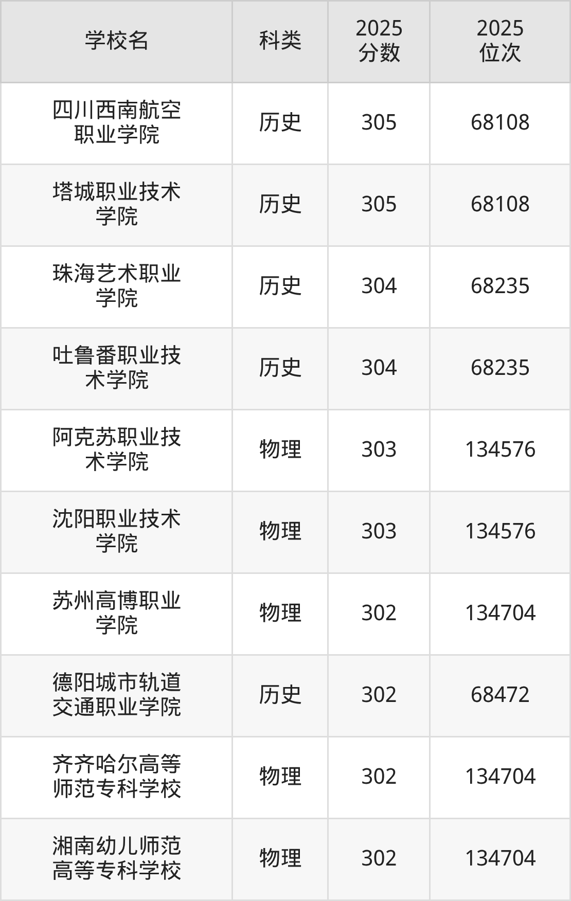 2025年新疆理科专科线为140分,320分能上的专科学校共计491所,其中公办大学录取位次排名最低的是通辽职业学院(140分),其2025最低位次为52538名。