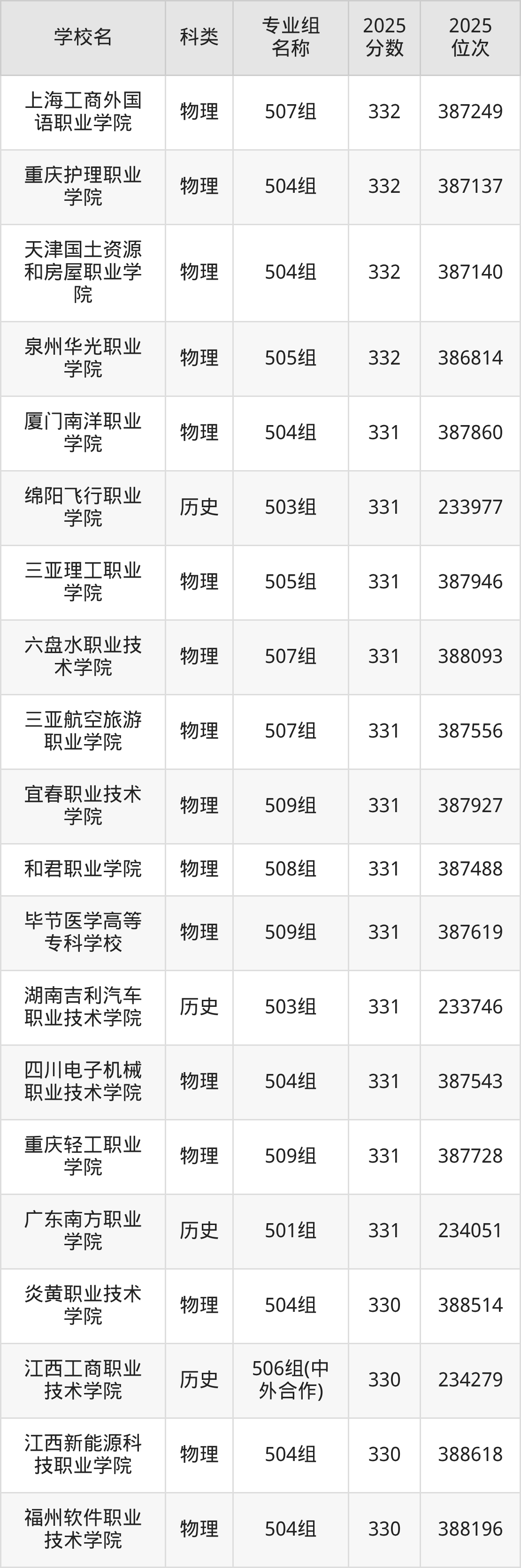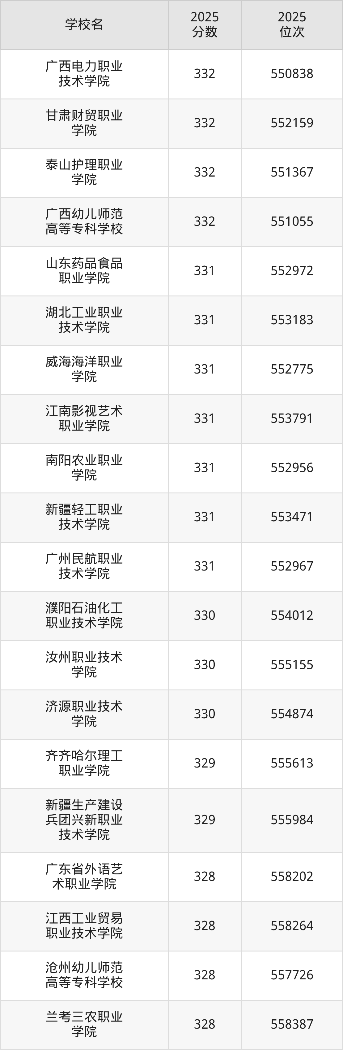 本文将收集各省332分能上的专科学校位次排名表(不含特殊招生计划、中外合作、分校区等),以供2026届考生参考。