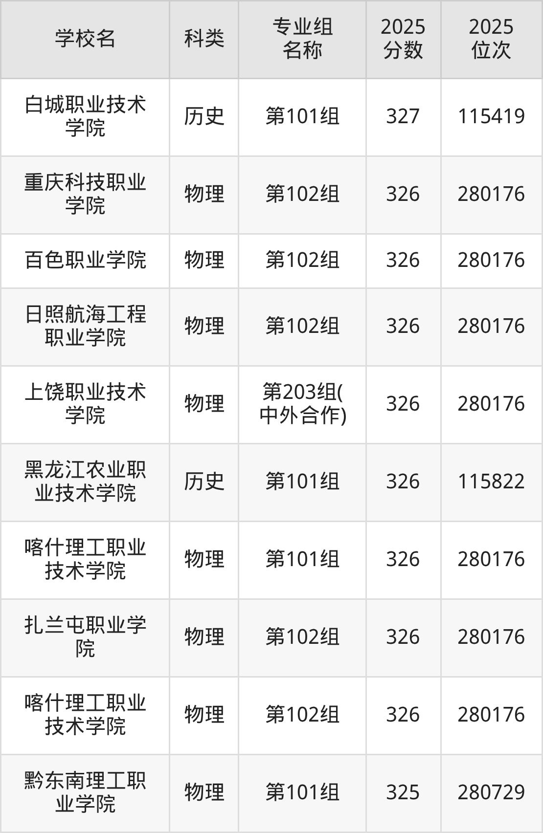 2025年重庆物理类专科线为180分,330分能上的专科学校共计236所,其中公办大学录取位次排名最低的是喀什职业技术学院(180分,位次139478名),即代表考生市排名位次在139478名及以内就可以报考公办专科。