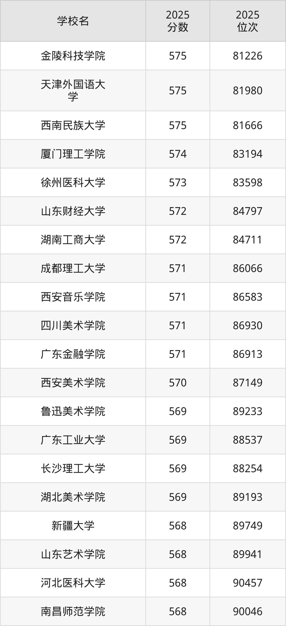 本文将收集各省575分能上的本科大学位次排名表(不含特殊招生计划、中外合作、分校区等),以供2026届考生参考。