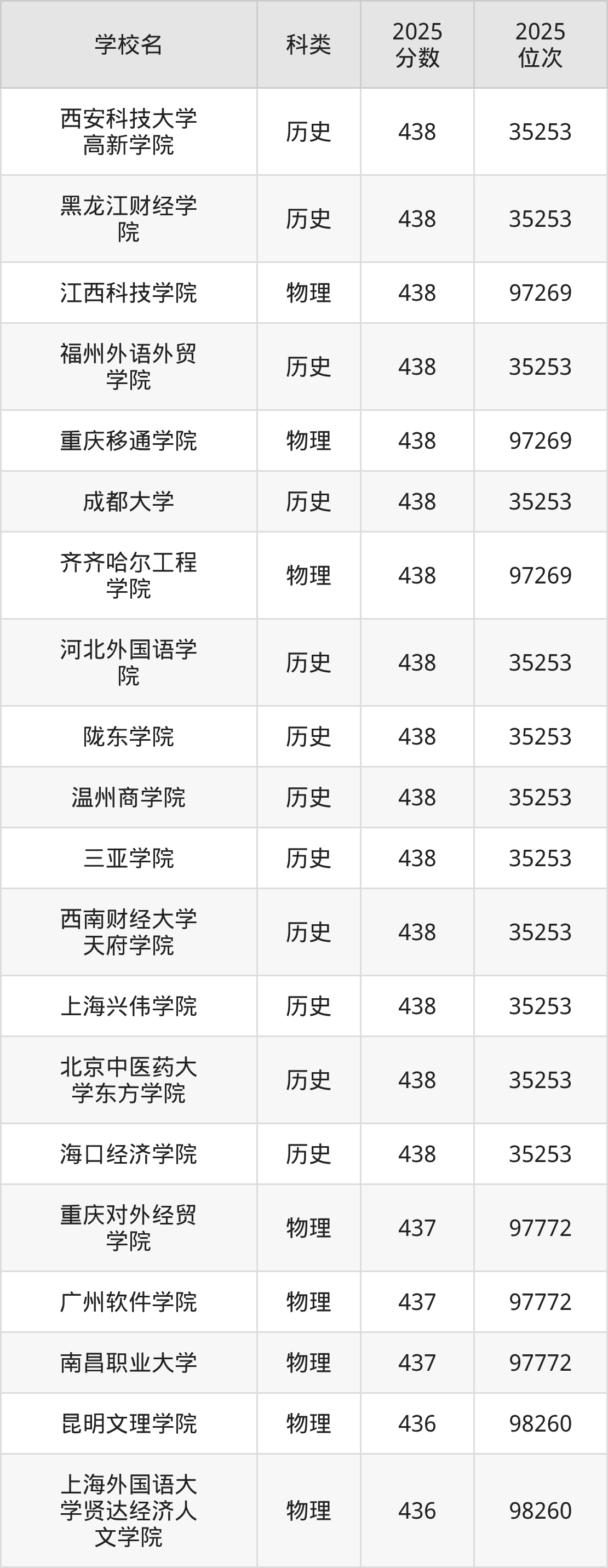 本文将收集各省438分能上的本科大学位次排名表(不含特殊招生计划、中外合作、分校区等),以供2026届考生参考。