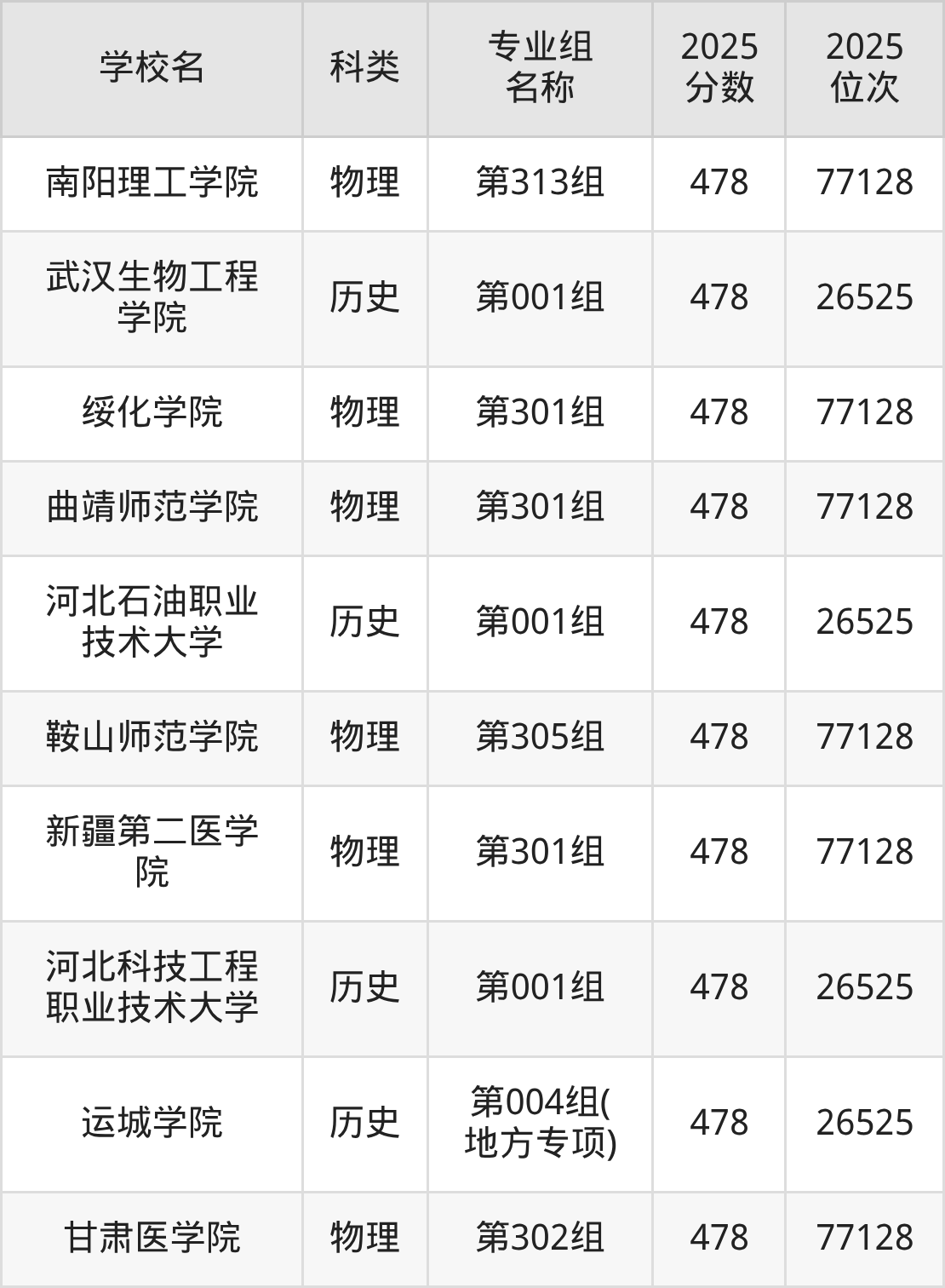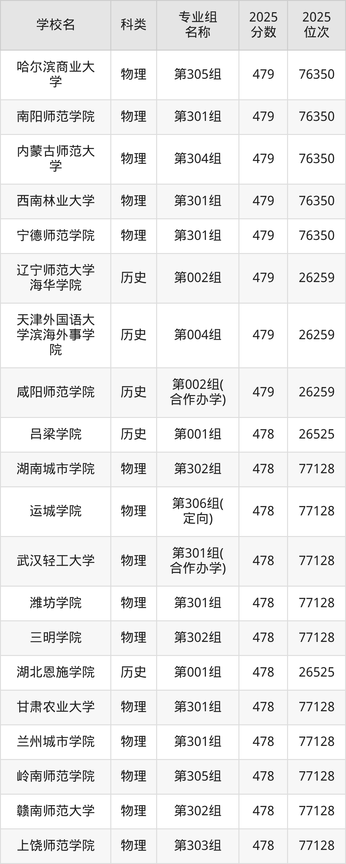 除上述院校外,479分可上的公办二本大学还有太原工业学院(第306组468分,位次84997名)、渭南师范学院(第003组(合作办学)477分,位次26822名)。