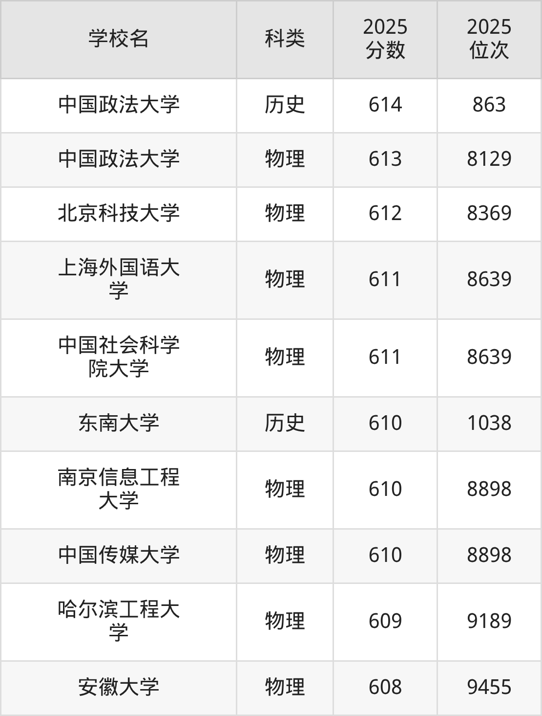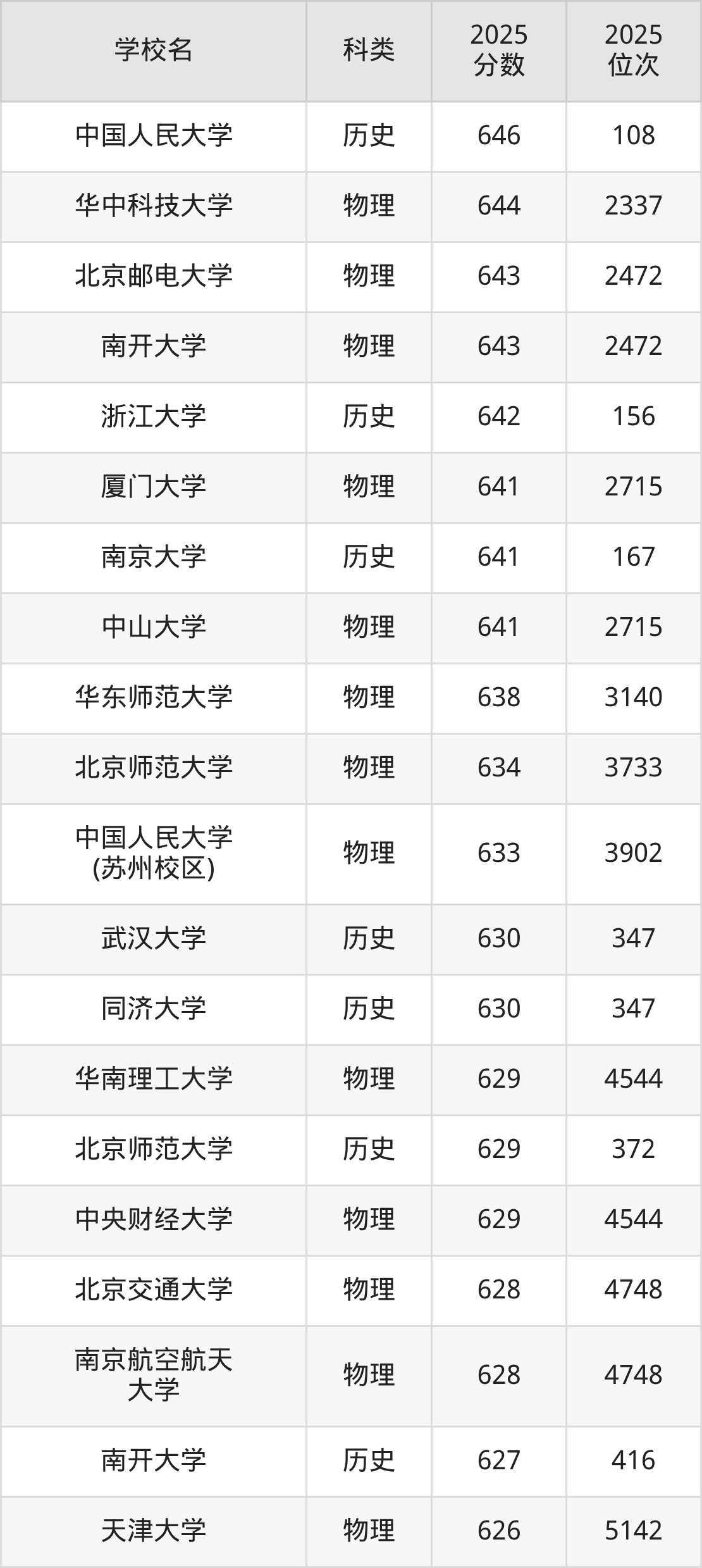 本文将收集各省648分能上的本科大学位次排名表(不含特殊招生计划、中外合作、分校区等),以供2026届考生参考。