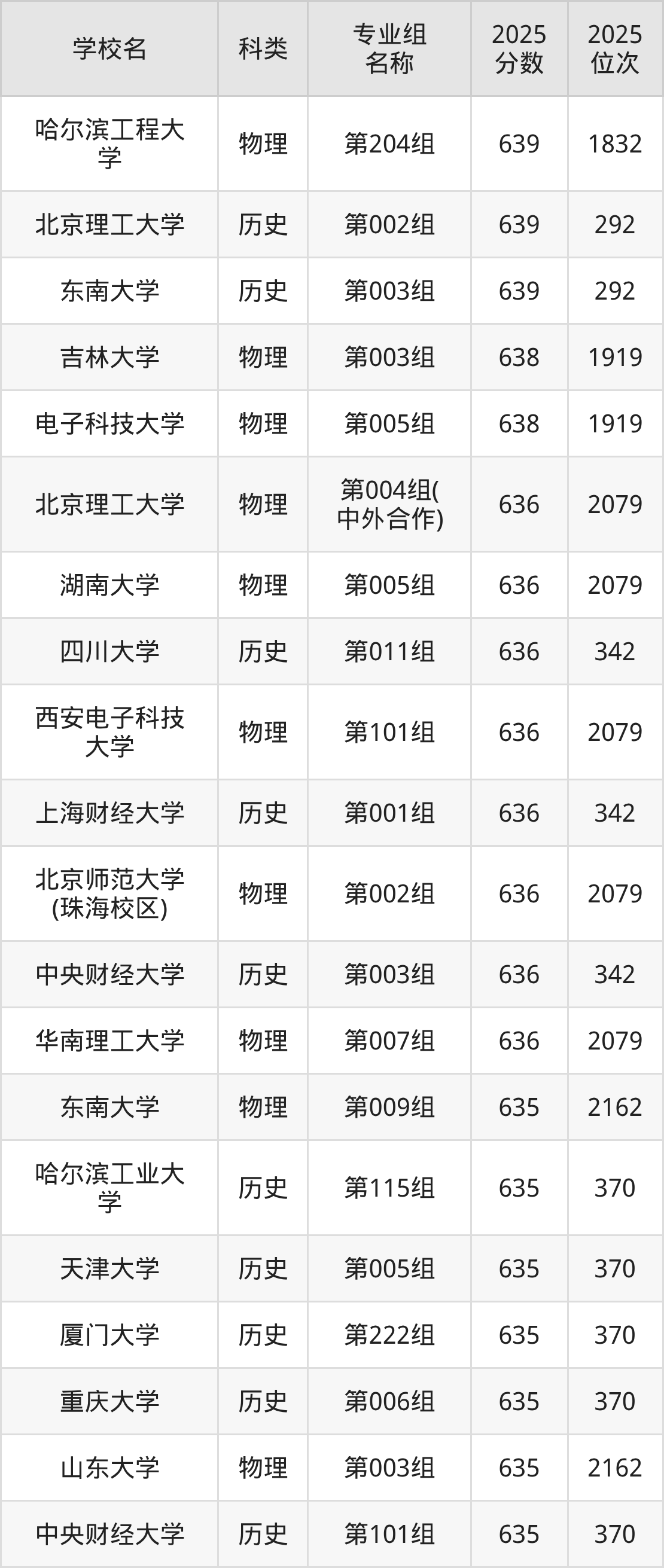 本文将收集各省639分能上的本科大学位次排名表(不含特殊招生计划、中外合作、分校区等),以供2026届考生参考。