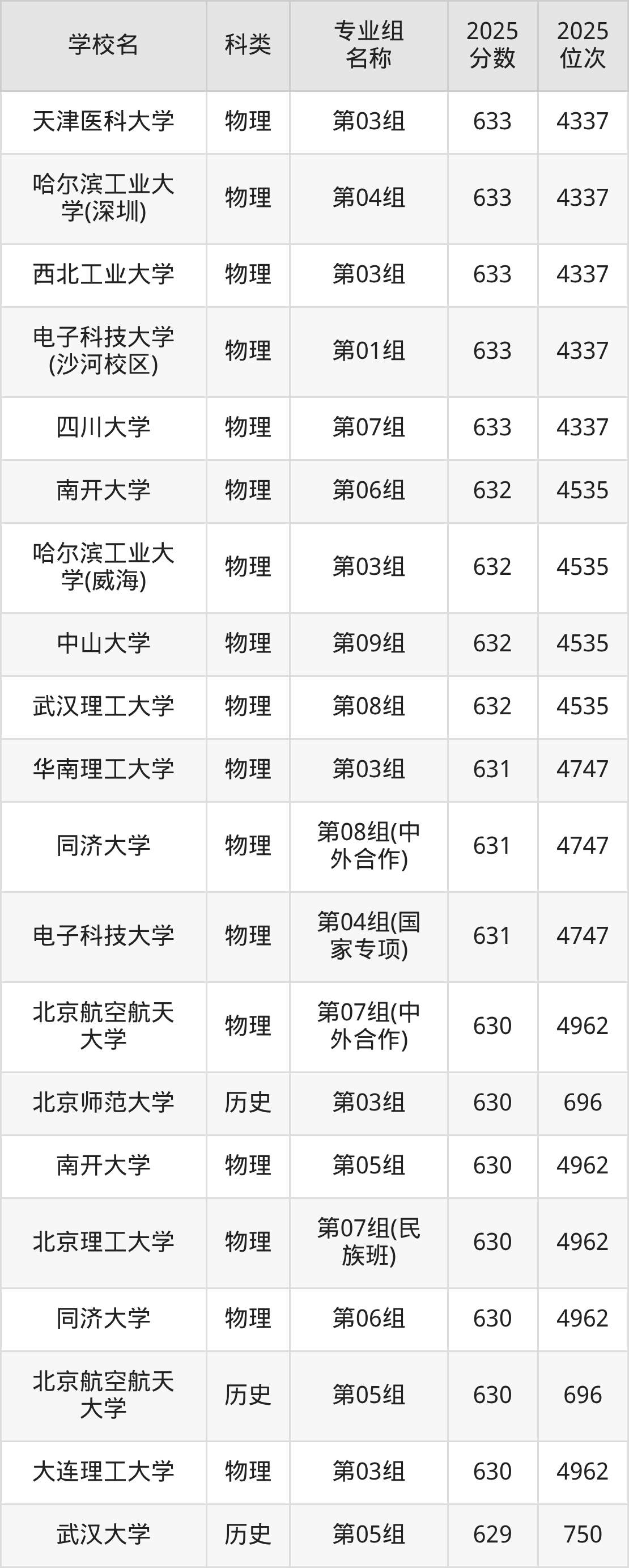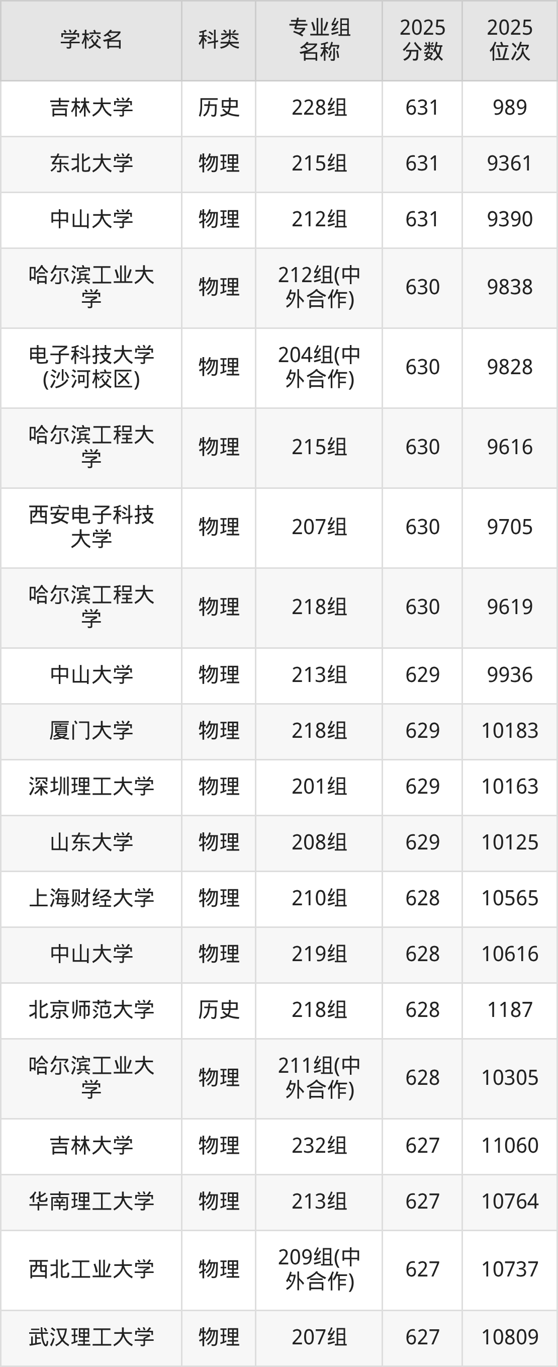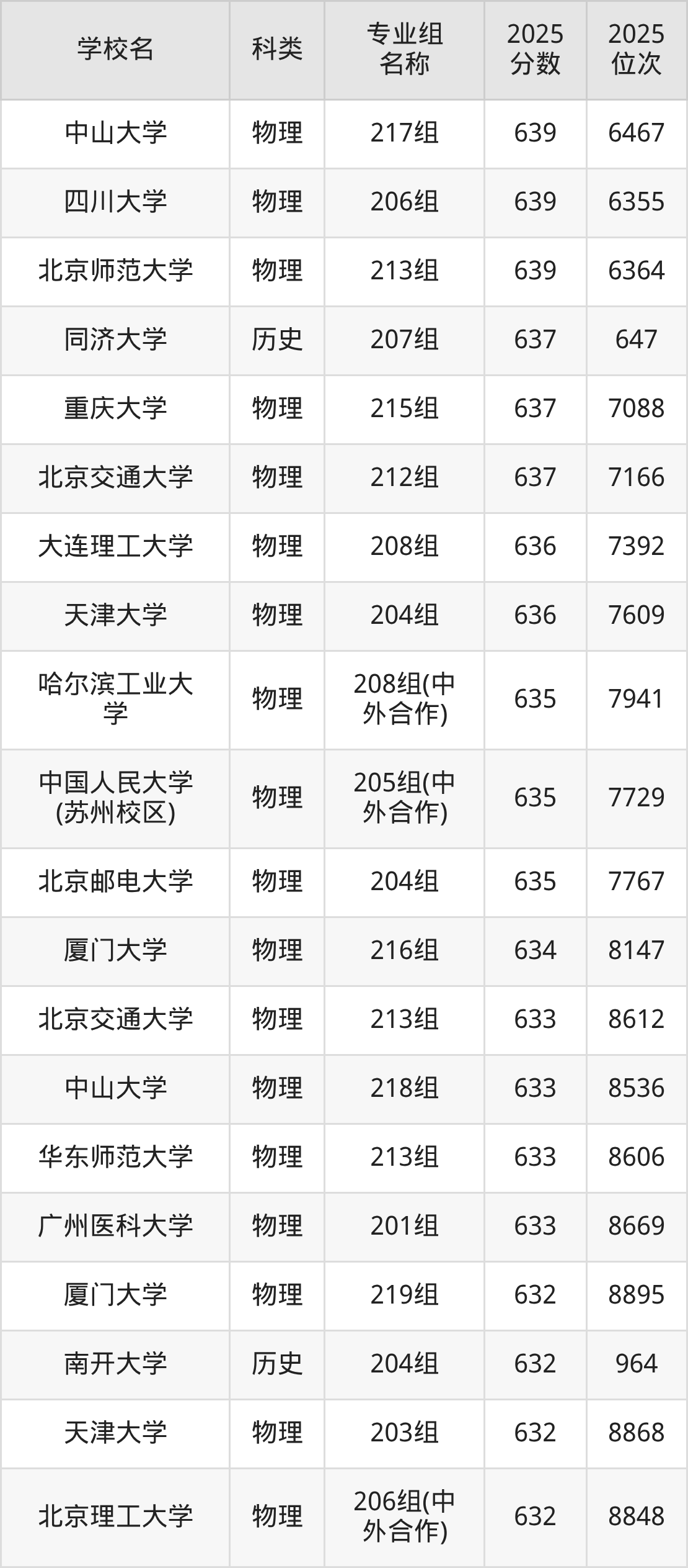 除上述院校外,639分可上的公办本科大学还有桂林理工大学(214组(中外合作)530分,位次112548名)、山东第一医科大学(205组528分,位次37072名)。