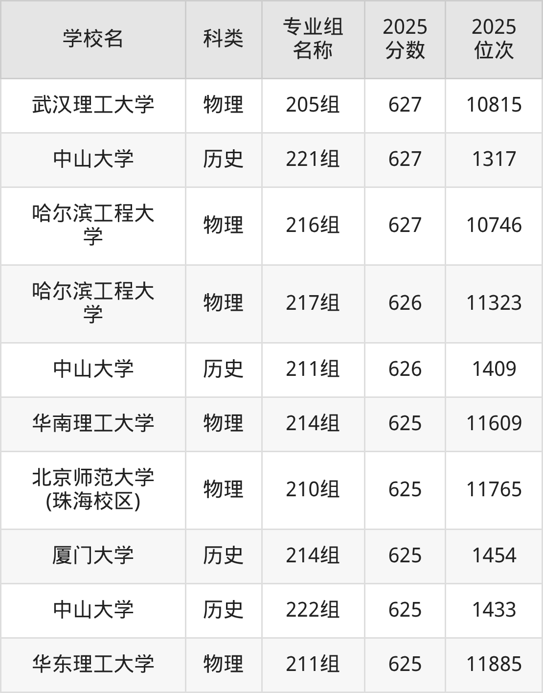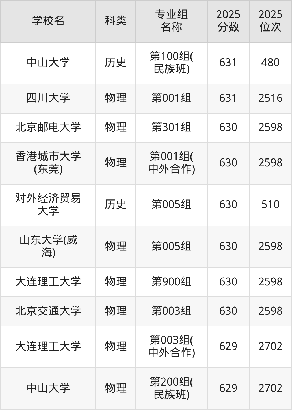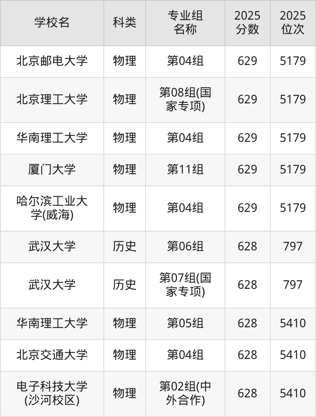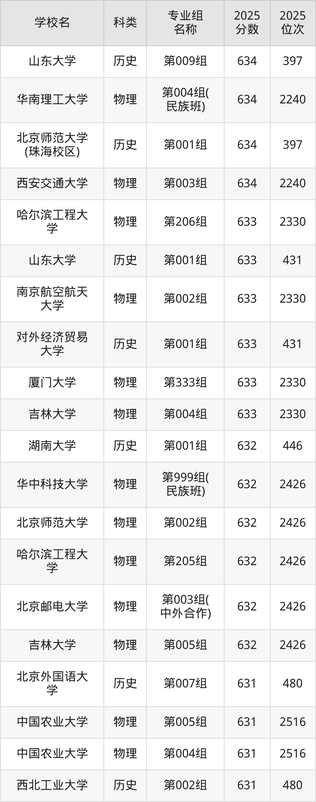 除上述院校外,639分可上的公办本科大学还有桂林理工大学(214组(中外合作)530分,位次112548名)、山东第一医科大学(205组528分,位次37072名)。