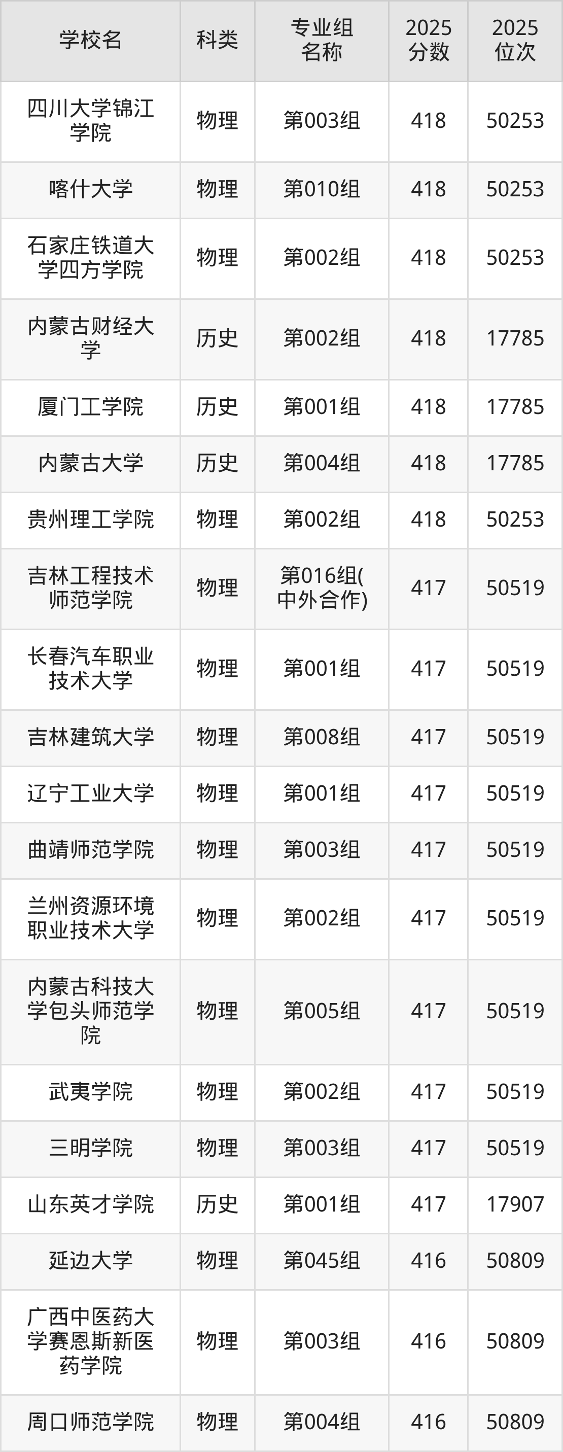 本文将收集各省418分能上的本科大学位次排名表(不含特殊招生计划、中外合作、分校区等),以供2026届考生参考。