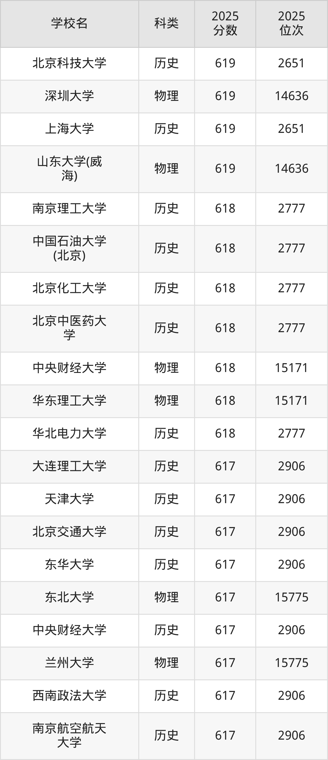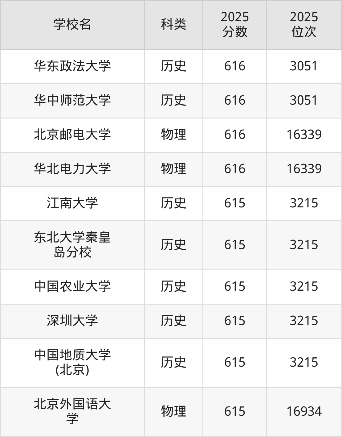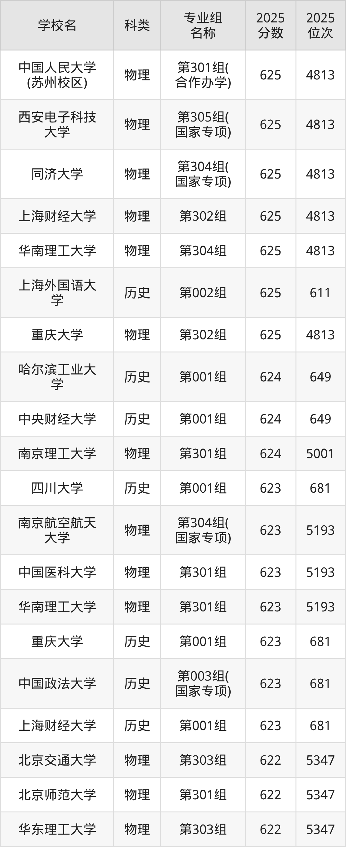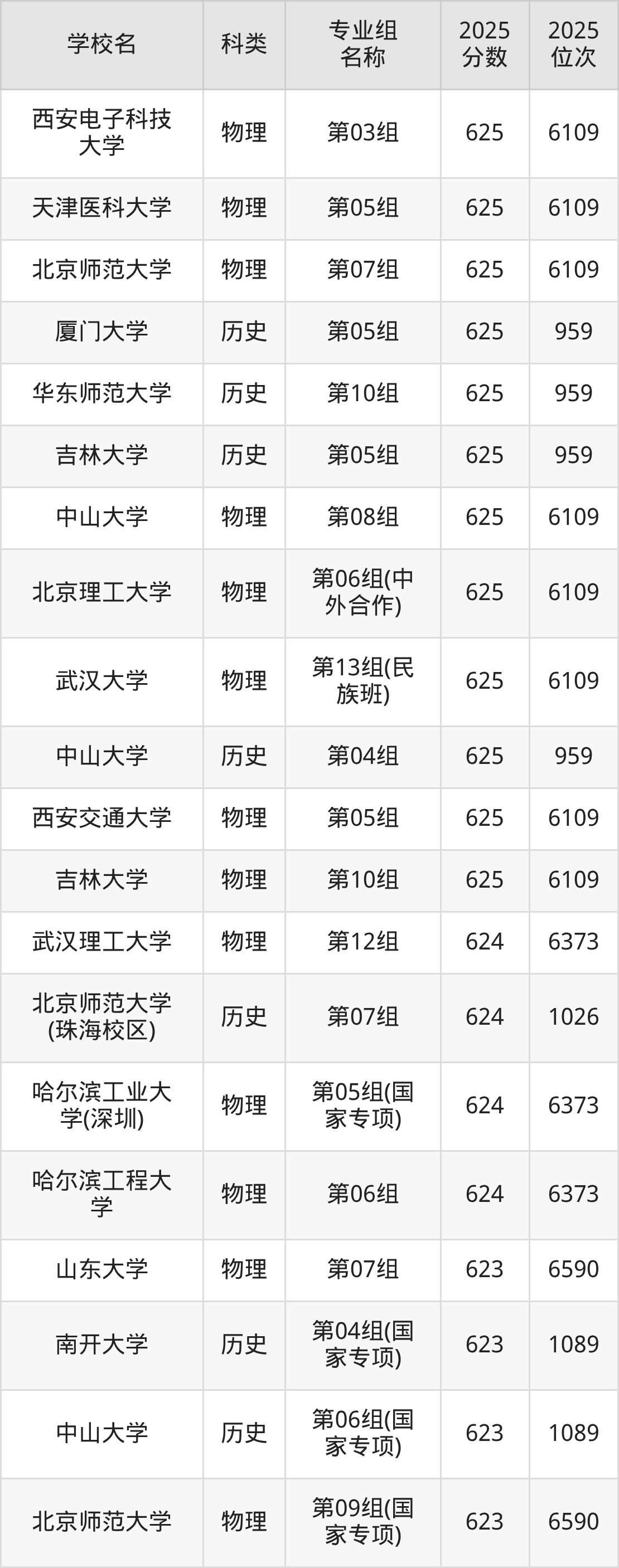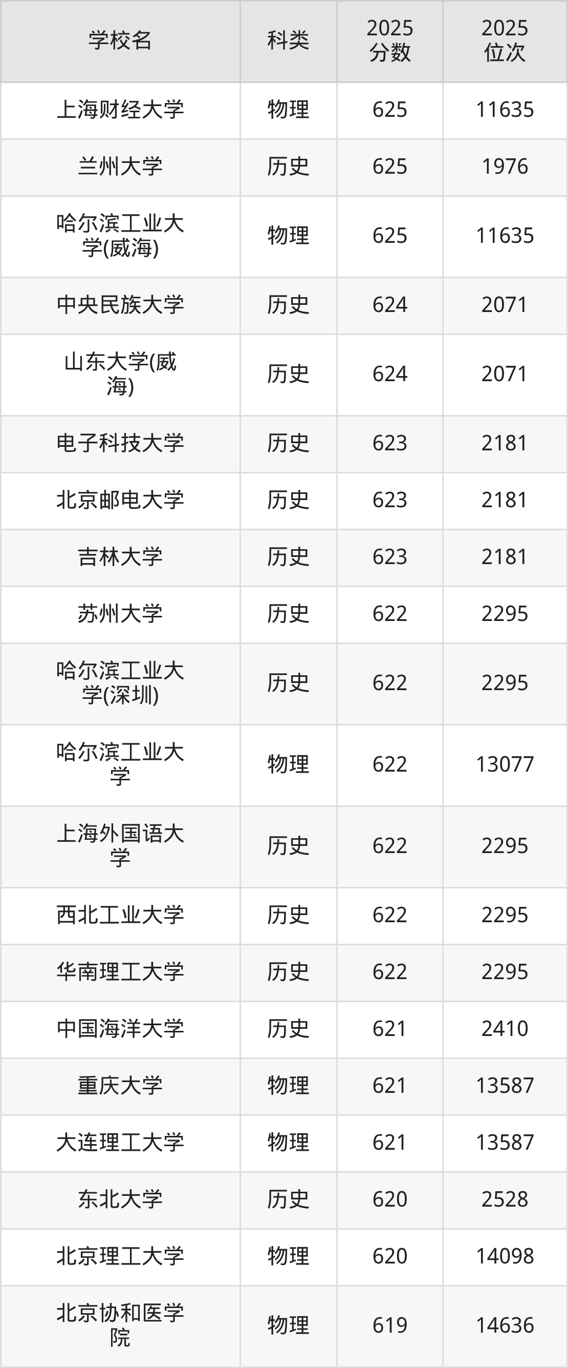 本文将收集各省625分能上的本科大学位次排名表(不含特殊招生计划、中外合作、分校区等),以供2026届考生参考。