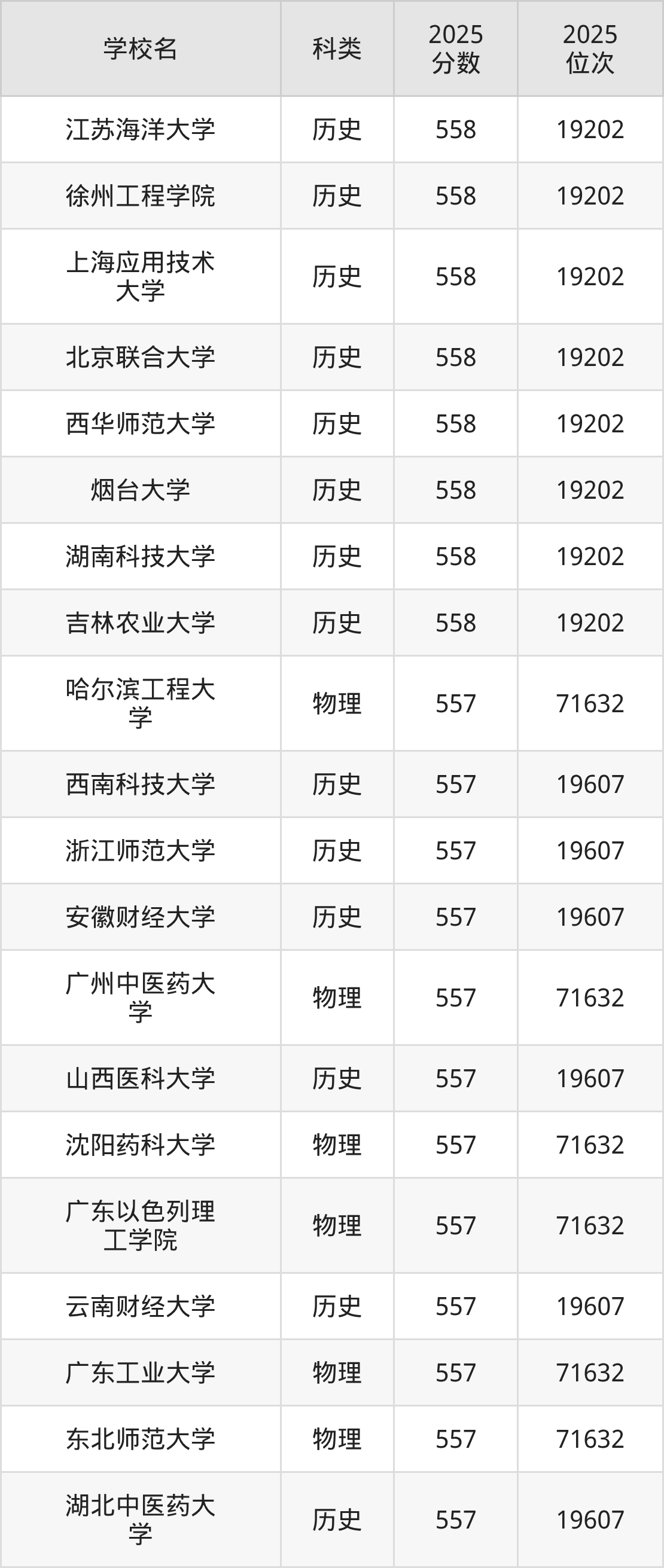 本文将收集各省558分能上的本科大学位次排名表(不含特殊招生计划、中外合作、分校区等),以供2026届考生参考。