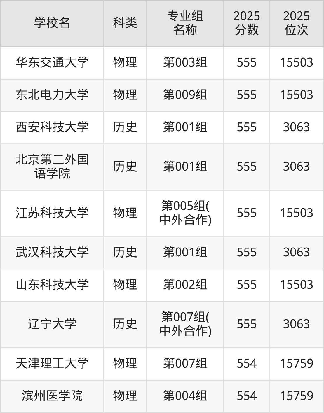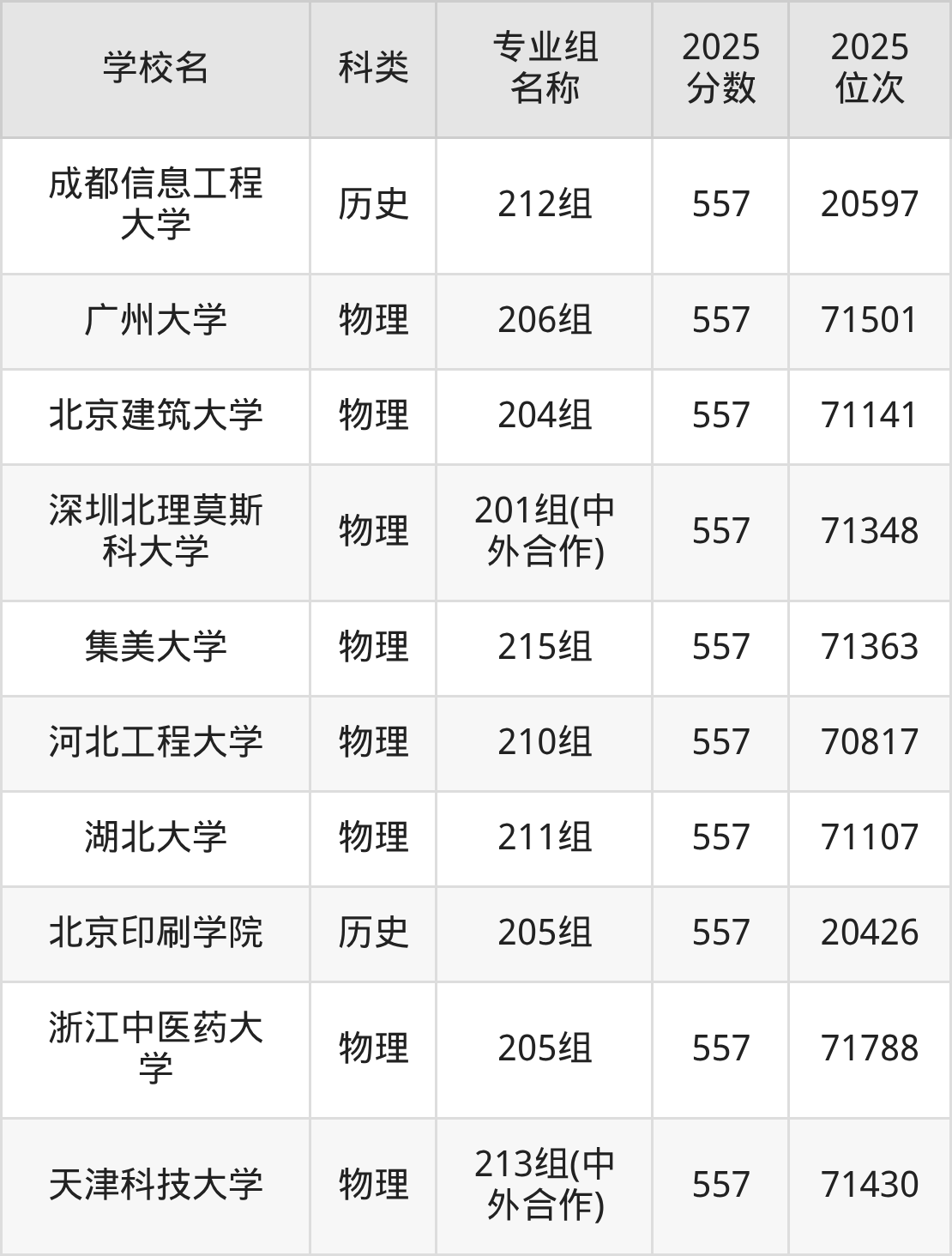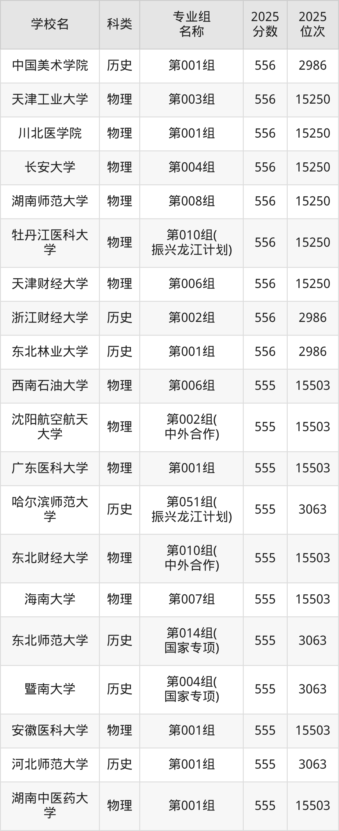 除上述院校外,558分可上的公办本科大学还有山东师范大学(第009组537分,位次20340名)、吉林财经大学(第005组507分,位次29828名)。