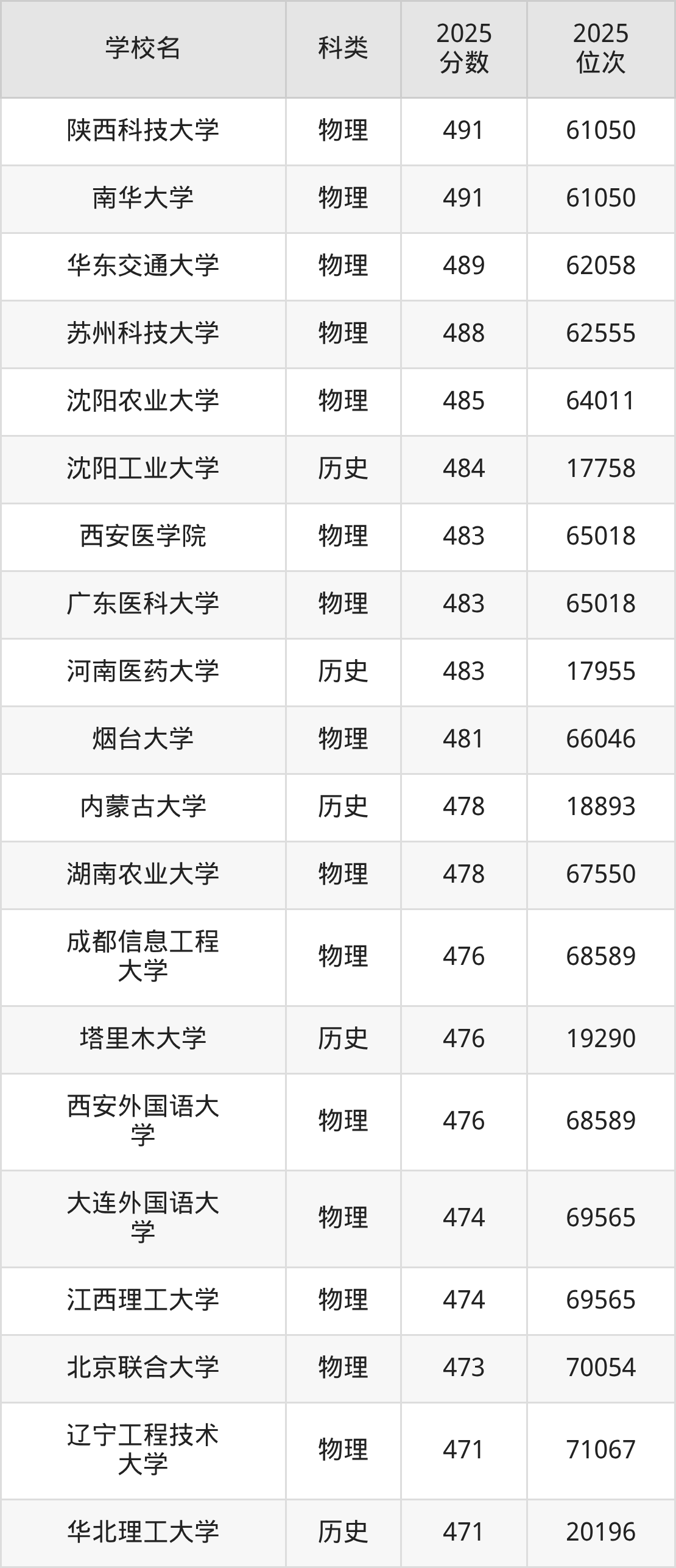 录取位次排名较低的公办一本大学还有东北石油大学(位次121965名)、长春理工大学(位次119476名)、新疆医科大学(位次111460名)等,适合省排名在11万名开外的本科生报考。