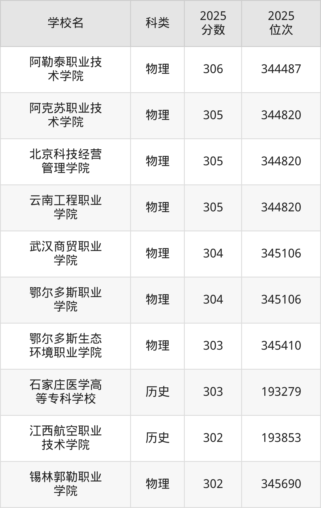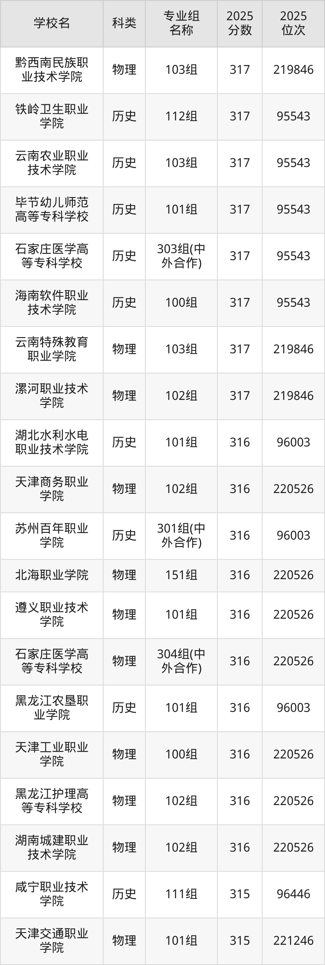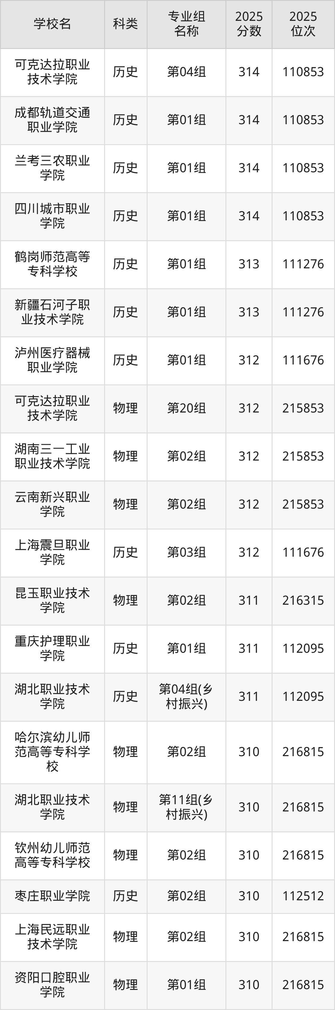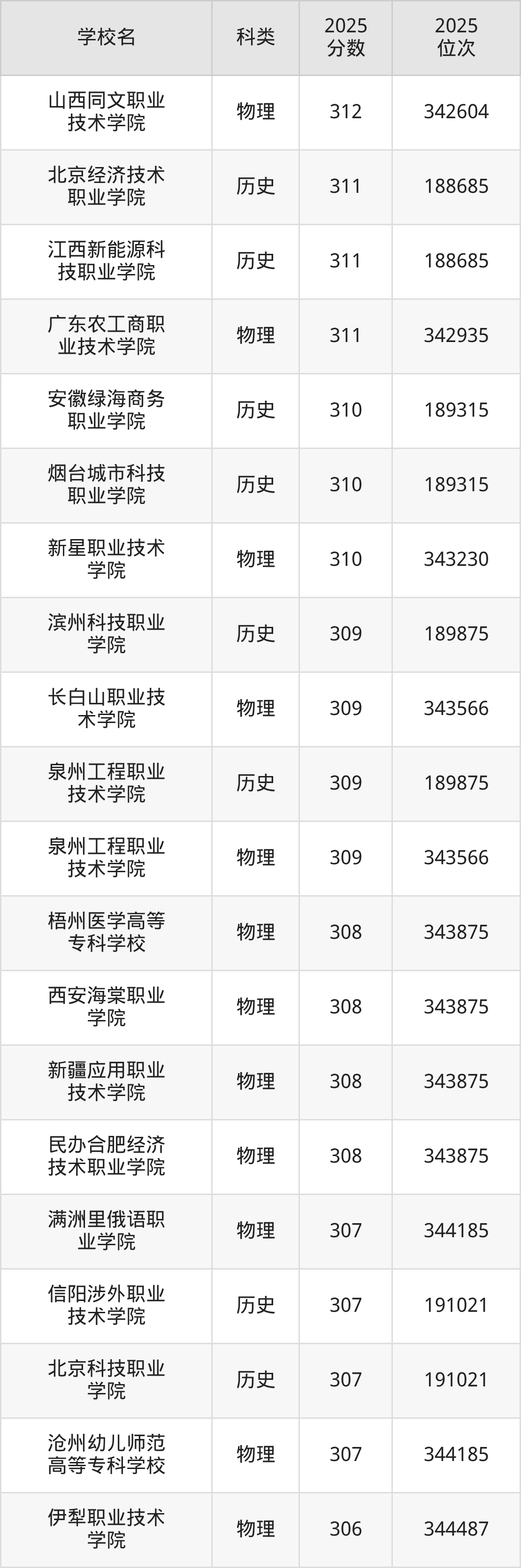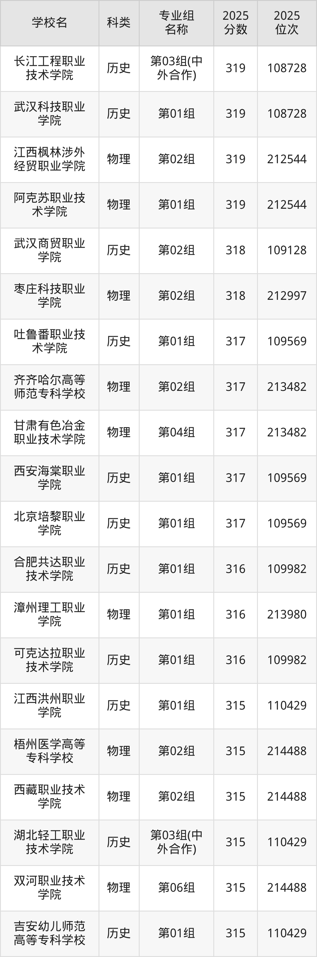 本文将收集各省319分能上的专科学校位次排名表(不含特殊招生计划、中外合作、分校区等),以供2026届考生参考。