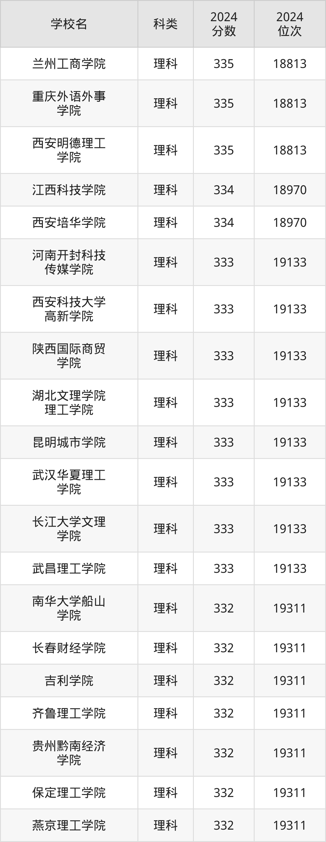同分数公办二本大学还有南昌工学院(位次20392名)、武汉东湖学院(位次20392名)、陕西服装工程学院(位次20392名)等,适合省排名在2万名开外的本科生报考。