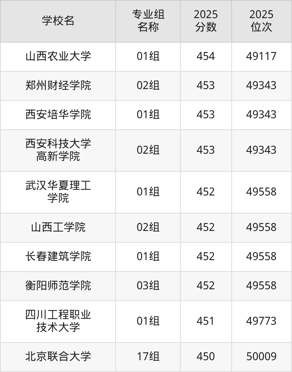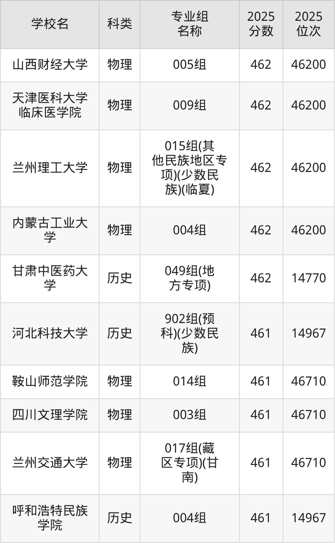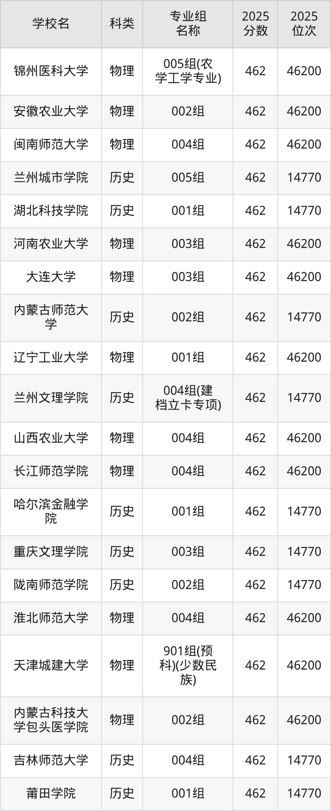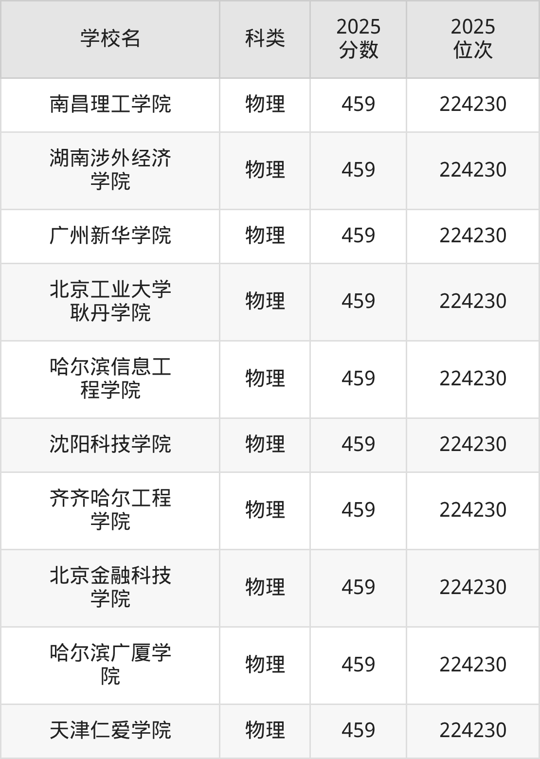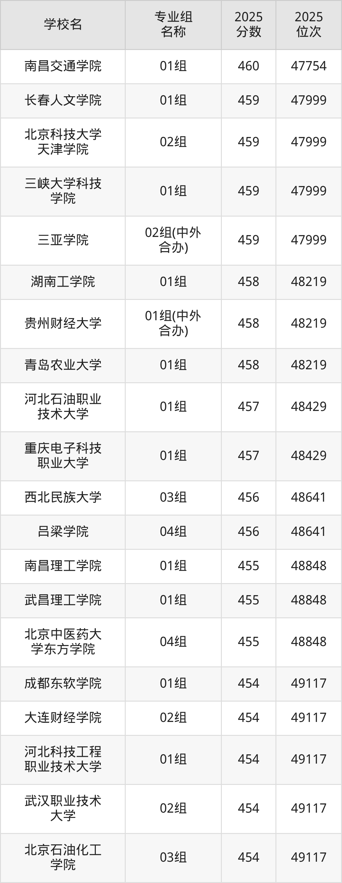 除上述院校外,463分可上的民办二本大学还有广东白云学院(463分,位次218647名)、长春人文学院(460分,位次222850名)。
