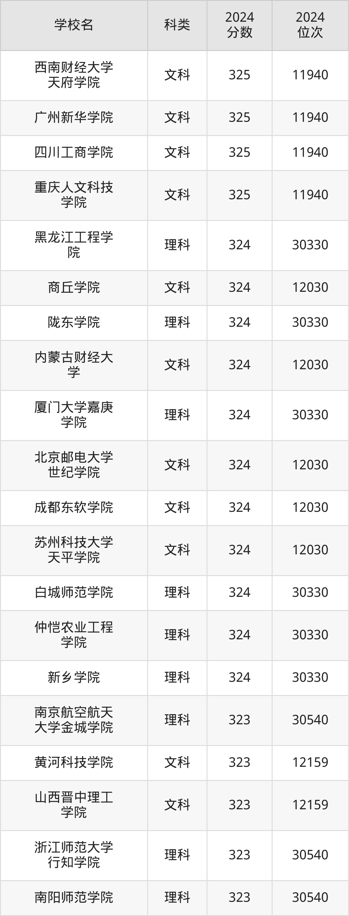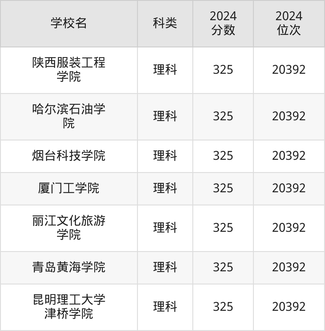同分数公办二本大学还有青岛工学院(位次20392名)、武汉东湖学院(位次20392名)、南宁理工学院(位次20392名)等,适合省排名在2万名开外的本科生报考。