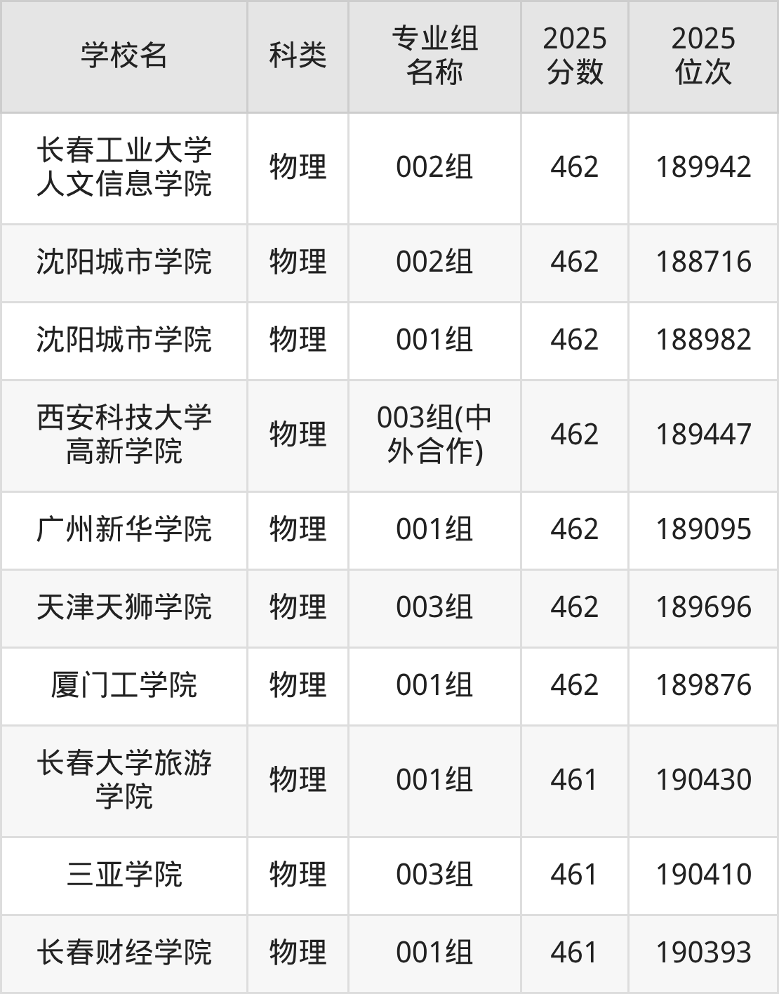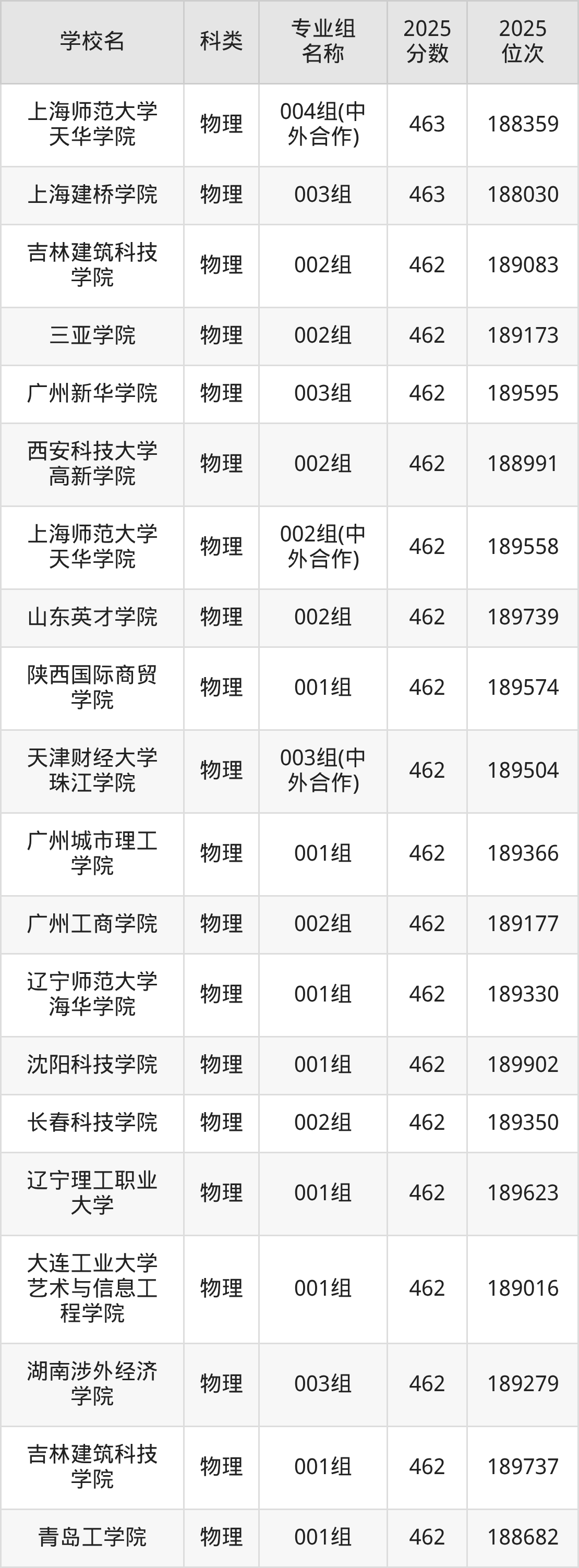 2025年安徽物理类本科线为461分,464分能上的二本大学共计65所,其中最低分民办院校为广州工商学院(001组461分),对应最低位次为191409名。因此想上民办本科的考生省排名位次至少要在191409名以内。