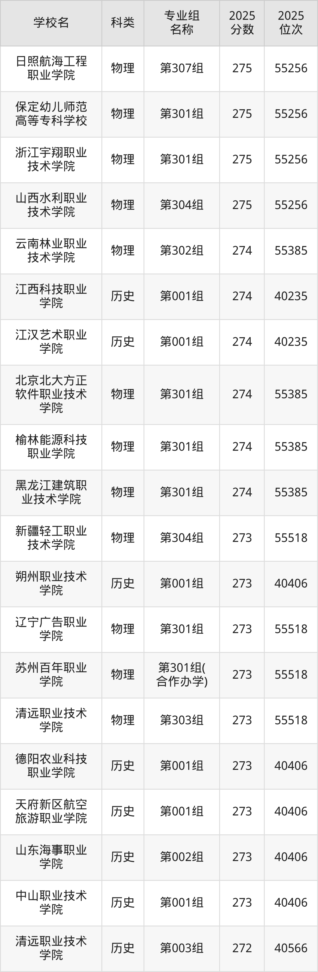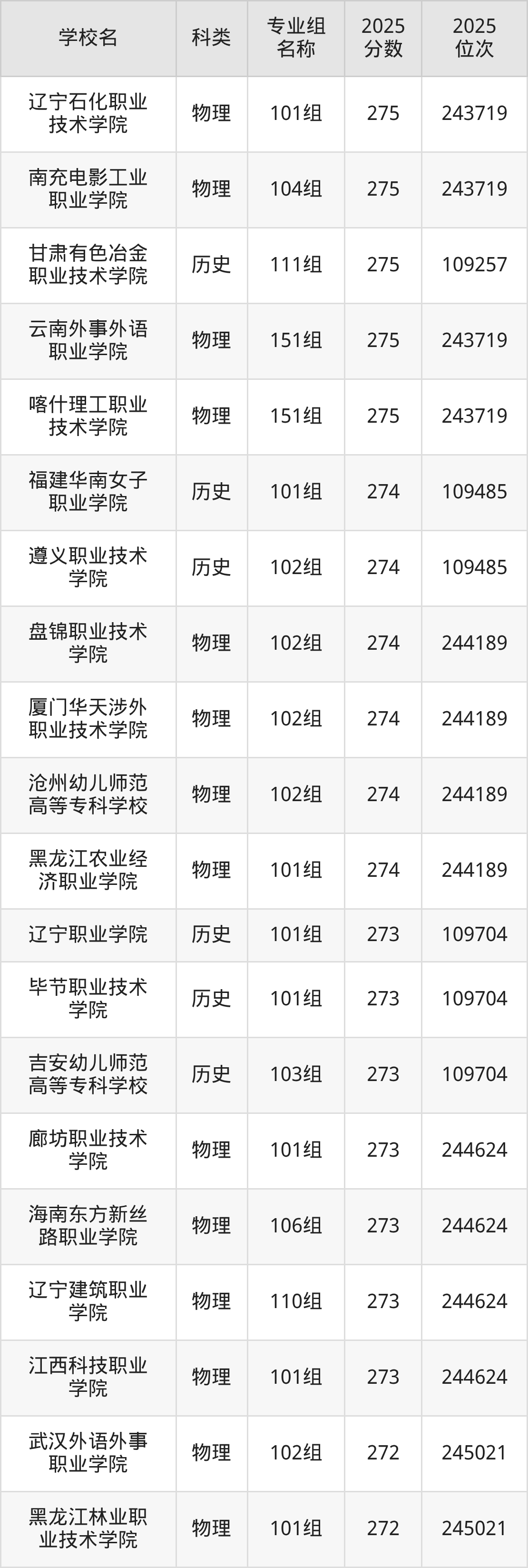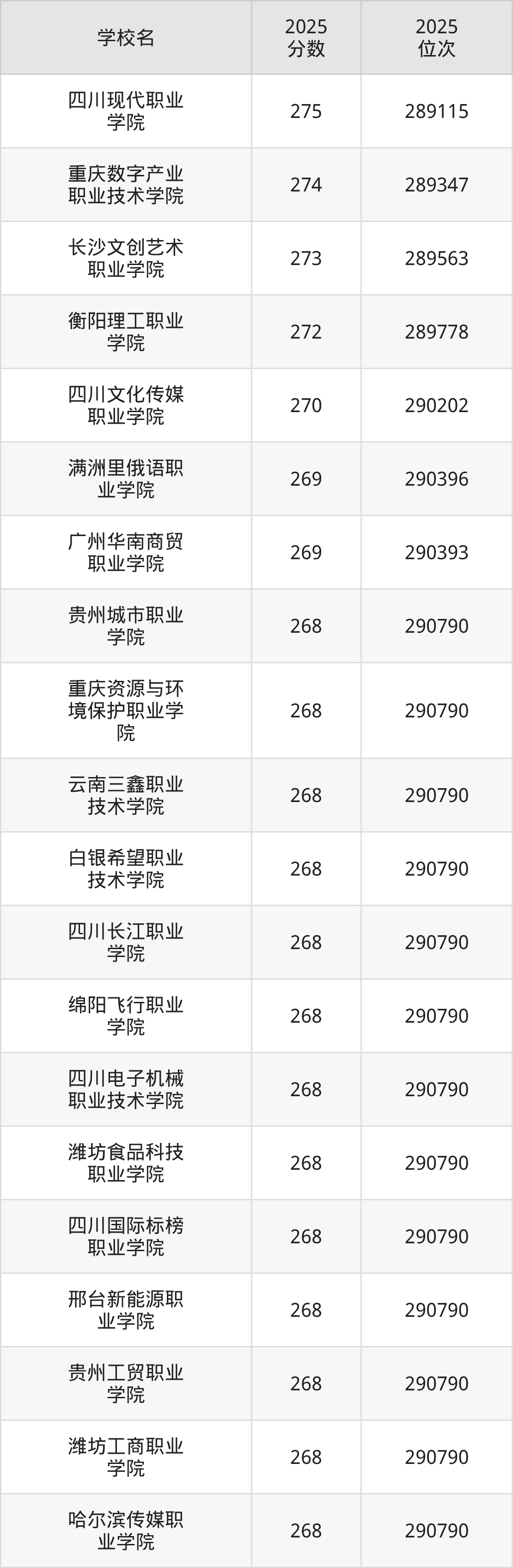 本文将收集各省275分能上的专科学校位次排名表(不含特殊招生计划、中外合作、分校区等),以供2026届考生参考。