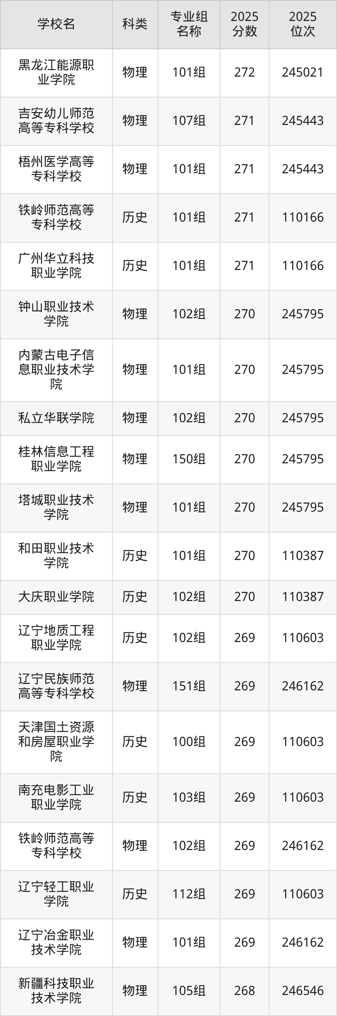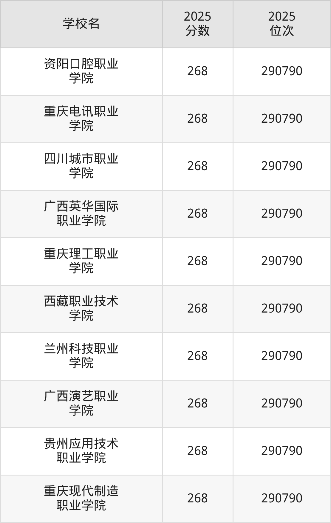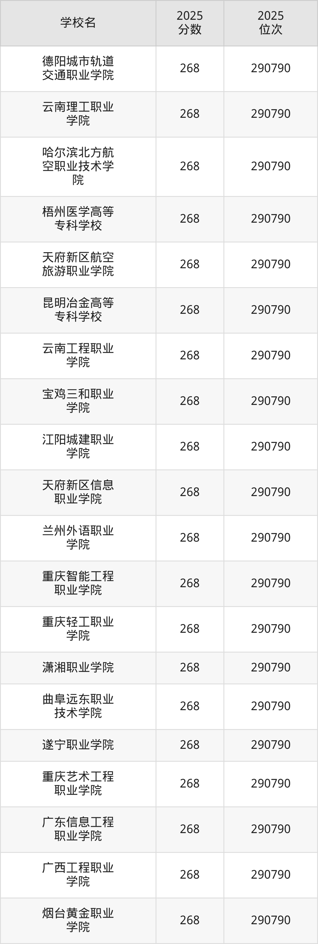 本文将收集各省275分能上的专科学校位次排名表(不含特殊招生计划、中外合作、分校区等),以供2026届考生参考。