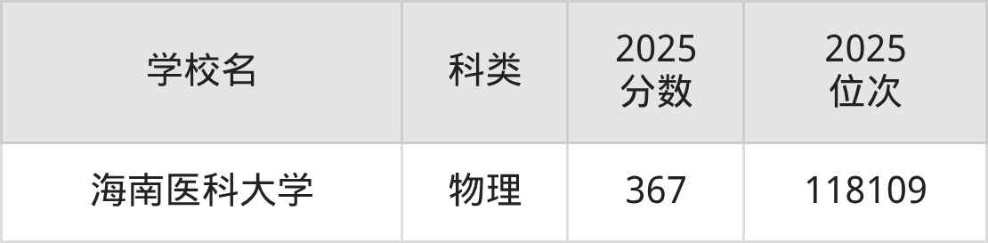 2025年辽宁物理类本科线为367分,压线能上的一本大学共计1所,对应大学最低位次排名为118109名。公办大学有海南医科大学。