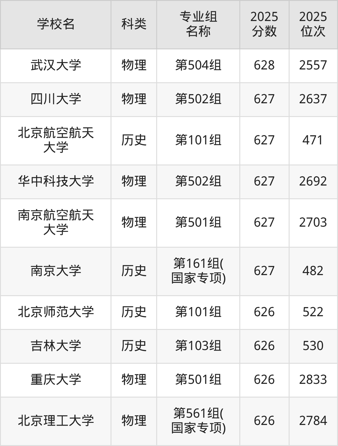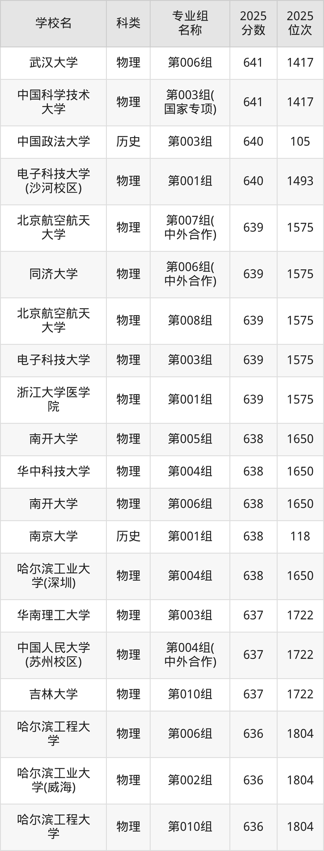 除上述院校外,642分可上的公办本科大学还有南京航空航天大学(第101组598分,位次2390名)、中央民族大学(第501组593分,位次11203名)。