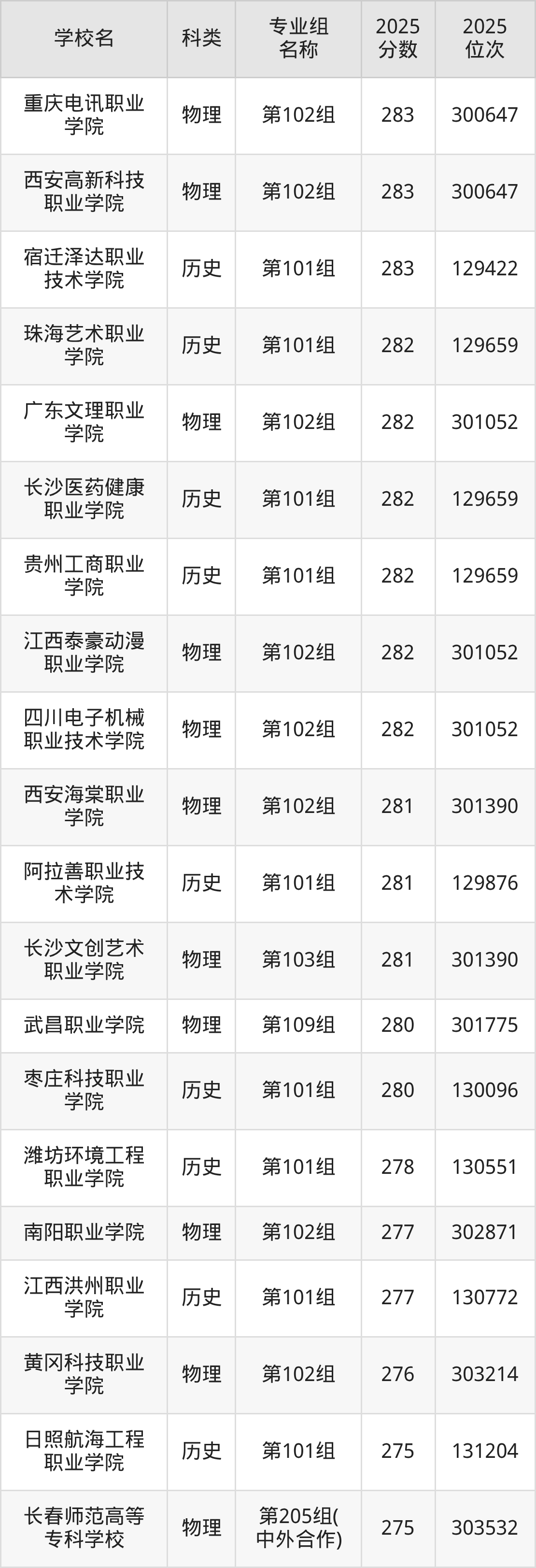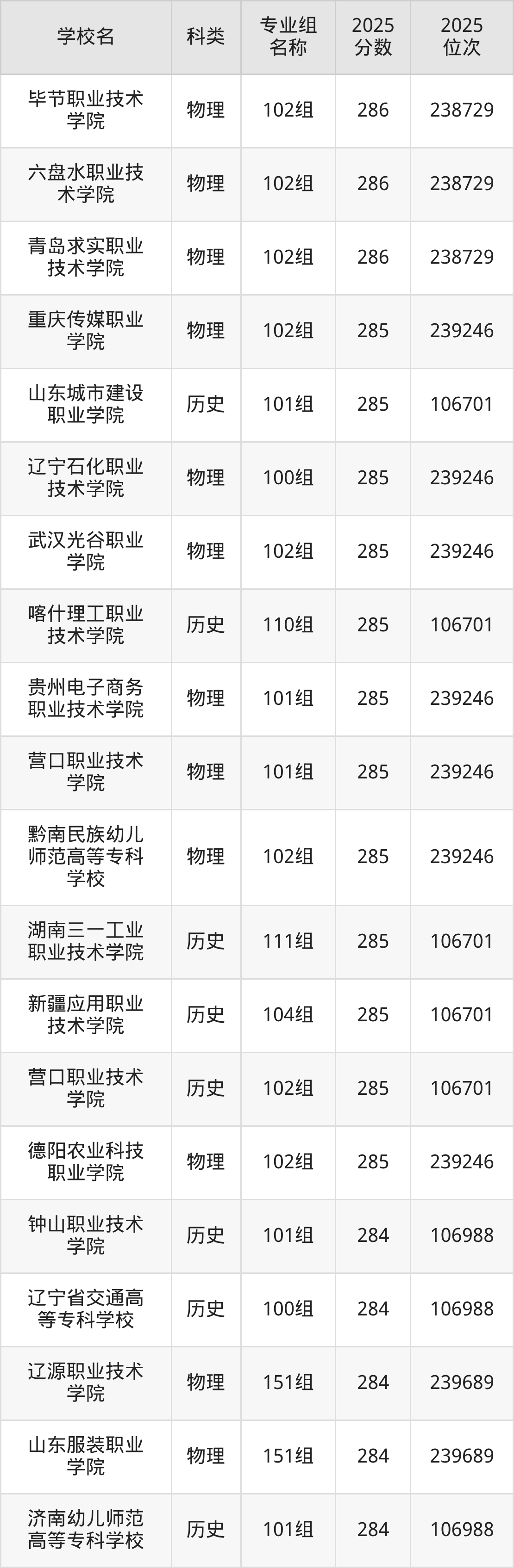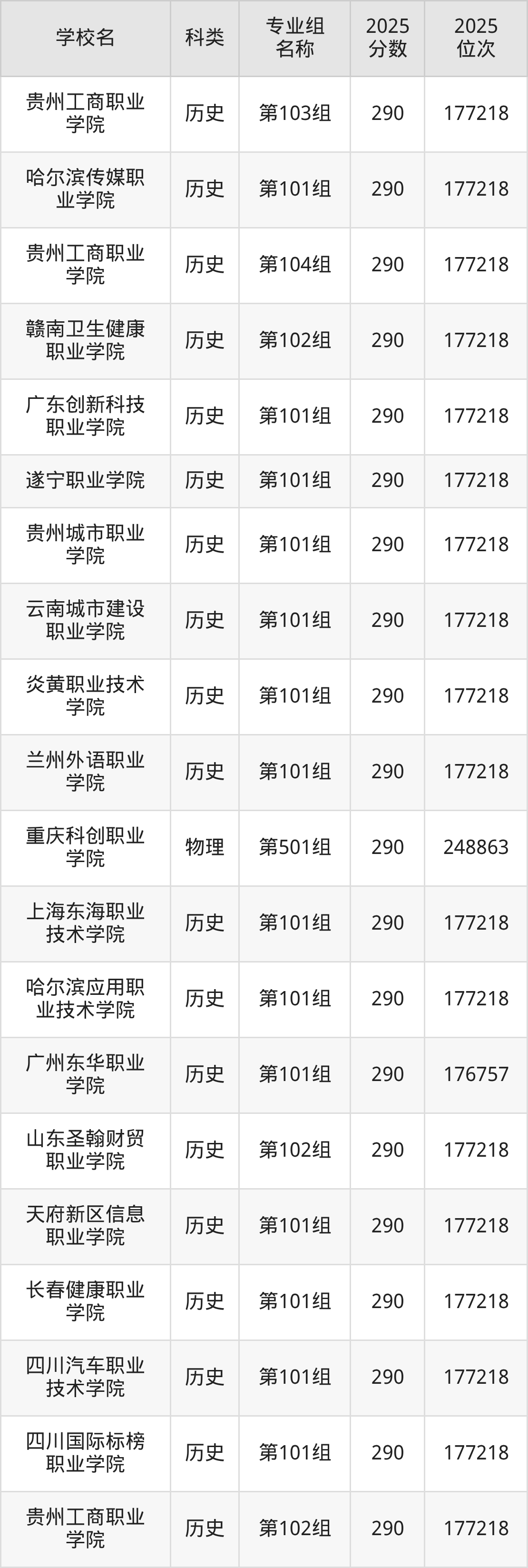 本文将收集各省290分能上的专科学校位次排名表(不含特殊招生计划、中外合作、分校区等),以供2026届考生参考。