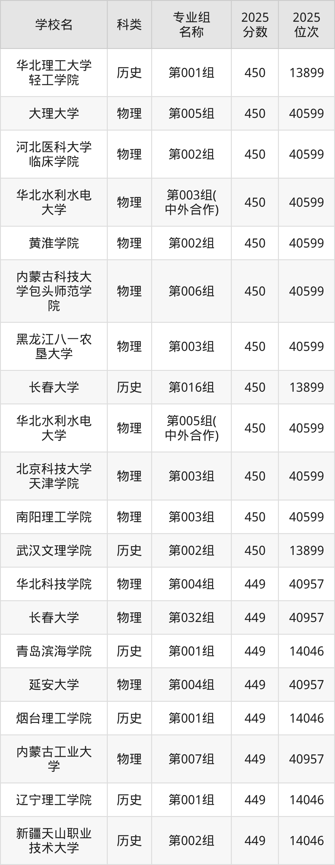 除上述院校外,450分可上的公办本科大学还有华北理工大学(438分,位次87686名)、琼台师范学院(440分,位次26250名)。