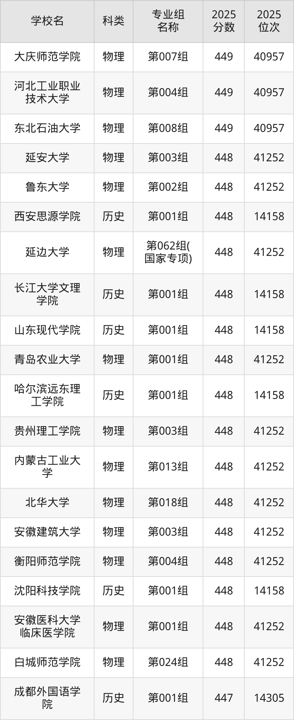 一、吉林450分能上的本科大学排名表