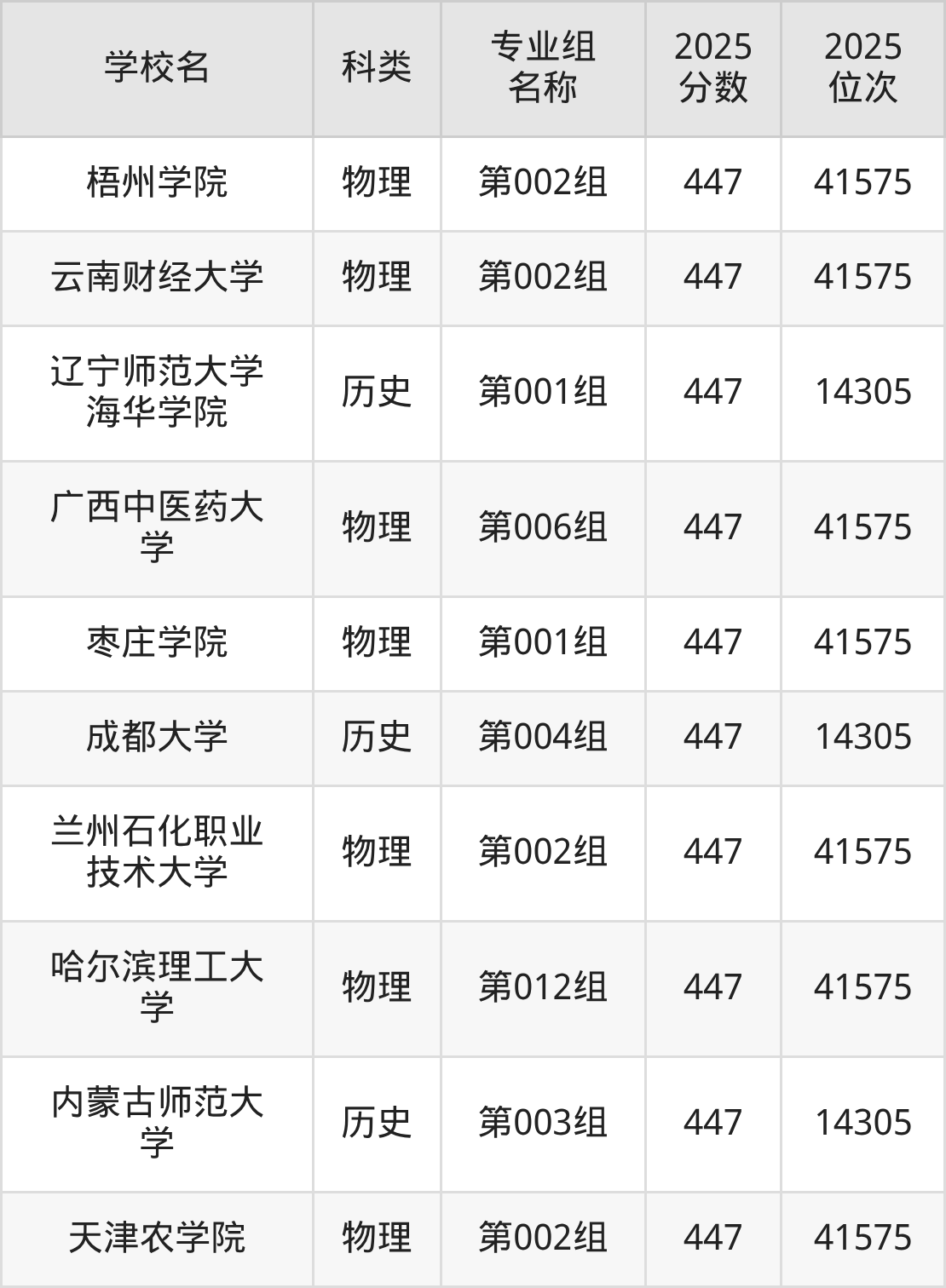 以吉林物理类为例,450分能上的本科大学有广西中医药大学(位次排名41575名)、哈尔滨理工大学(位次排名47554名)、太原学院(位次排名52335名)。