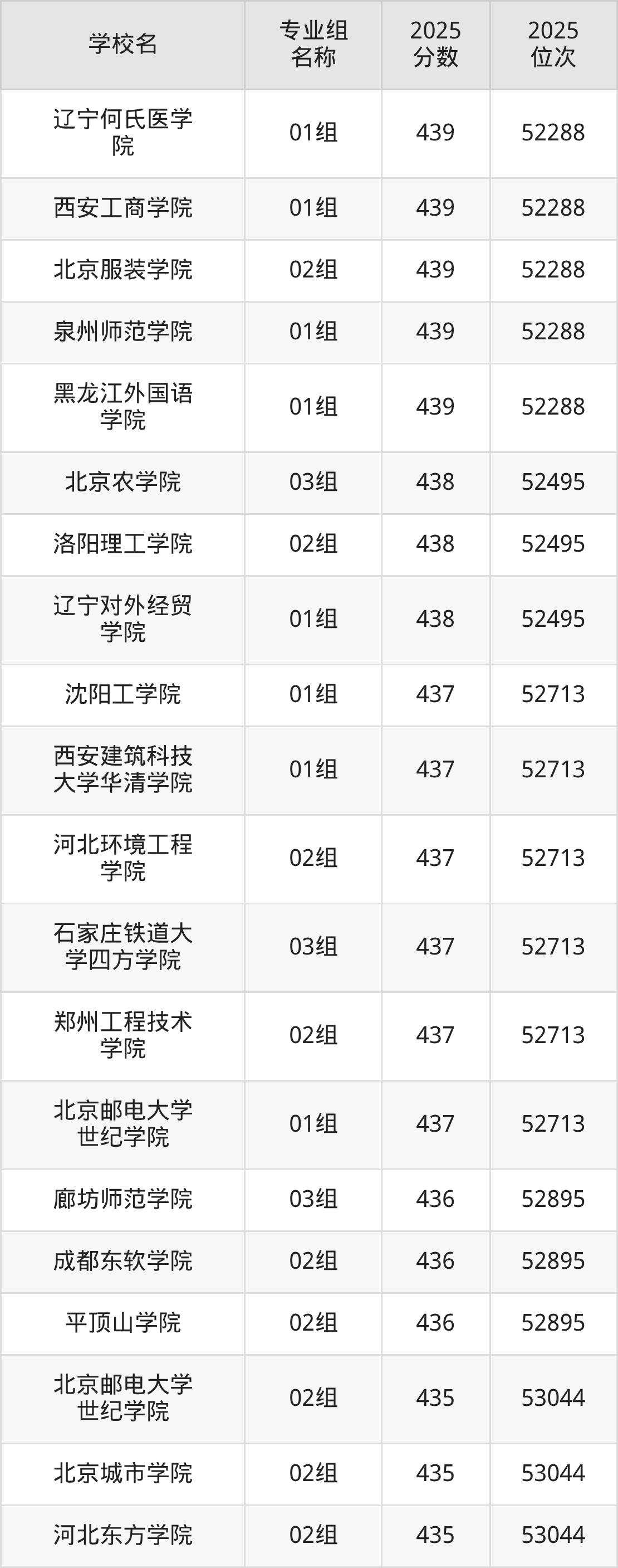 下面是辽宁450分能上的本科大学排名Top50一览表: