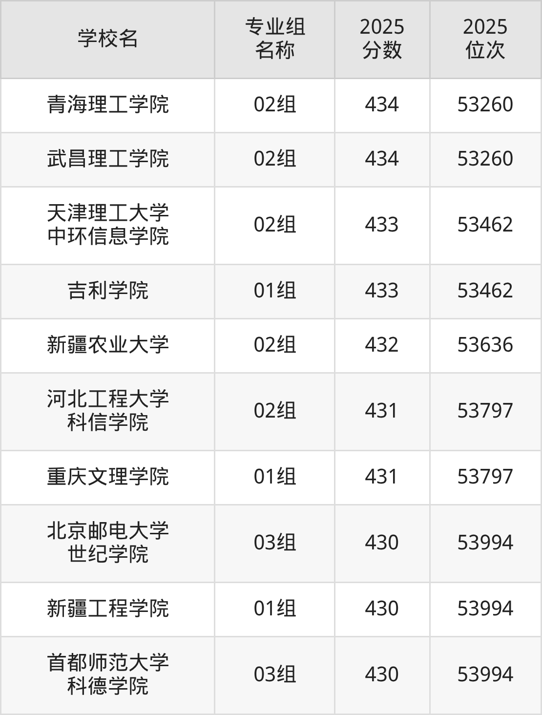 下面是吉林450分能上的本科大学排名Top50一览表: