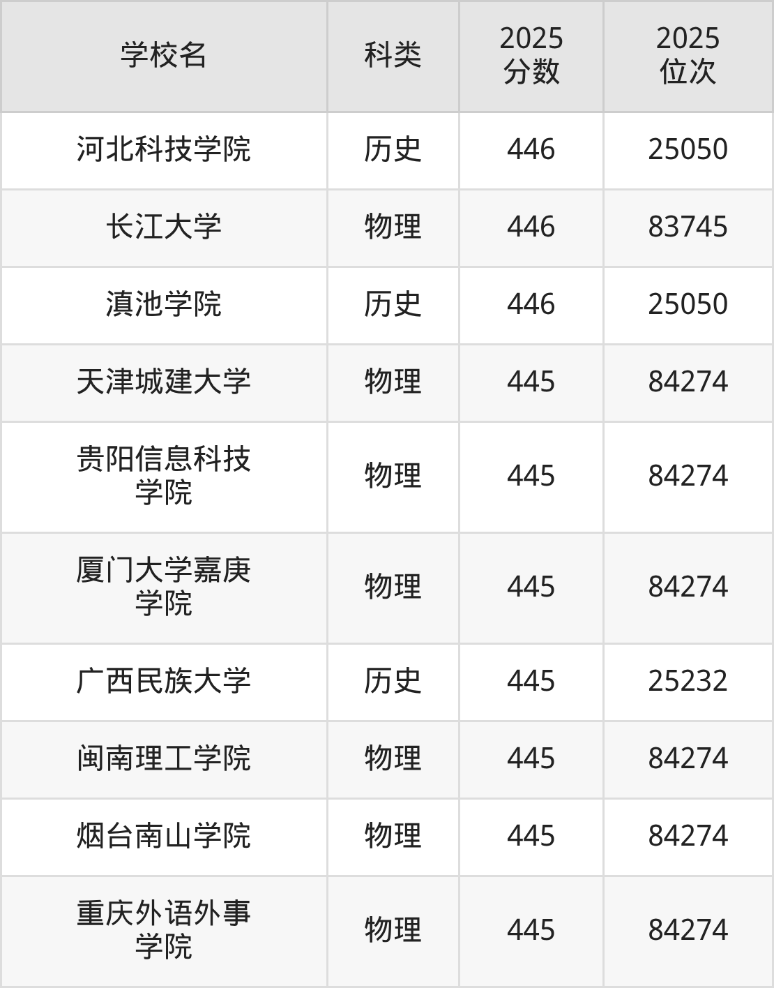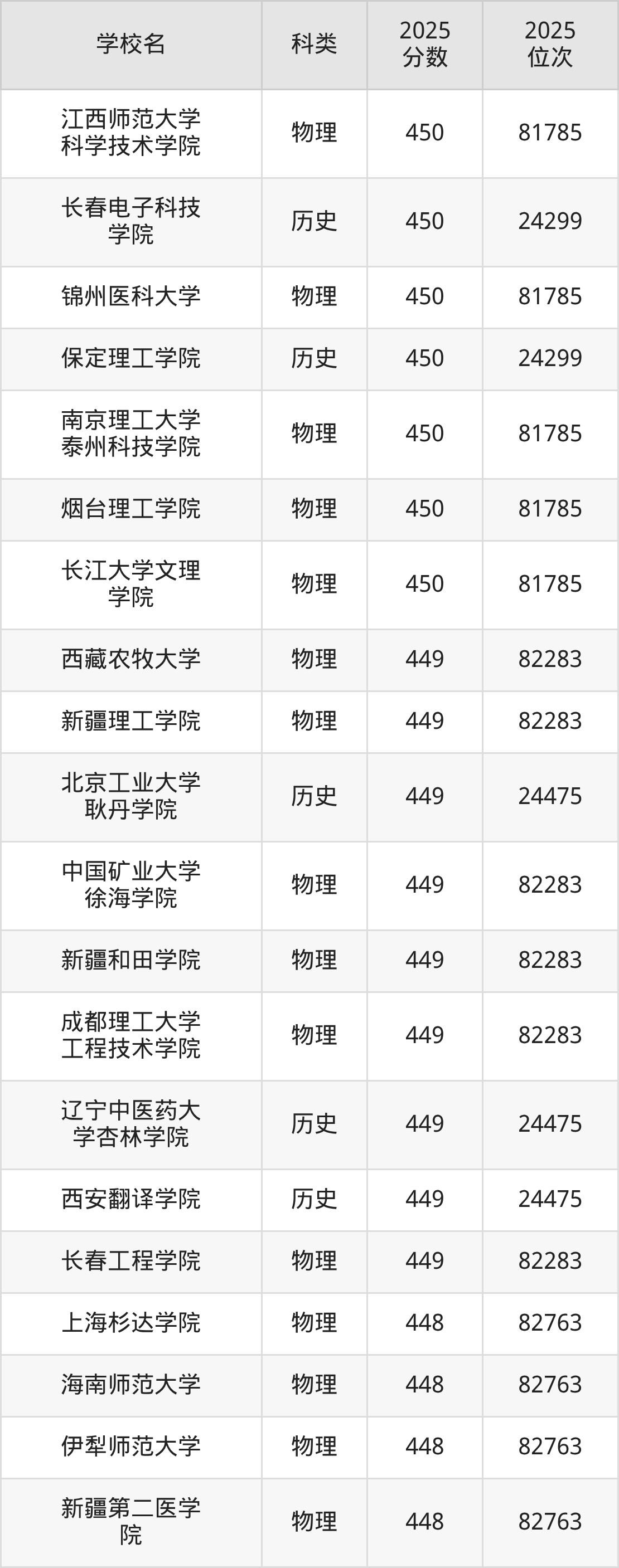 本文将收集各省450分能上的本科大学位次排名表(不含特殊招生计划、中外合作、分校区等),以供2026届考生参考。