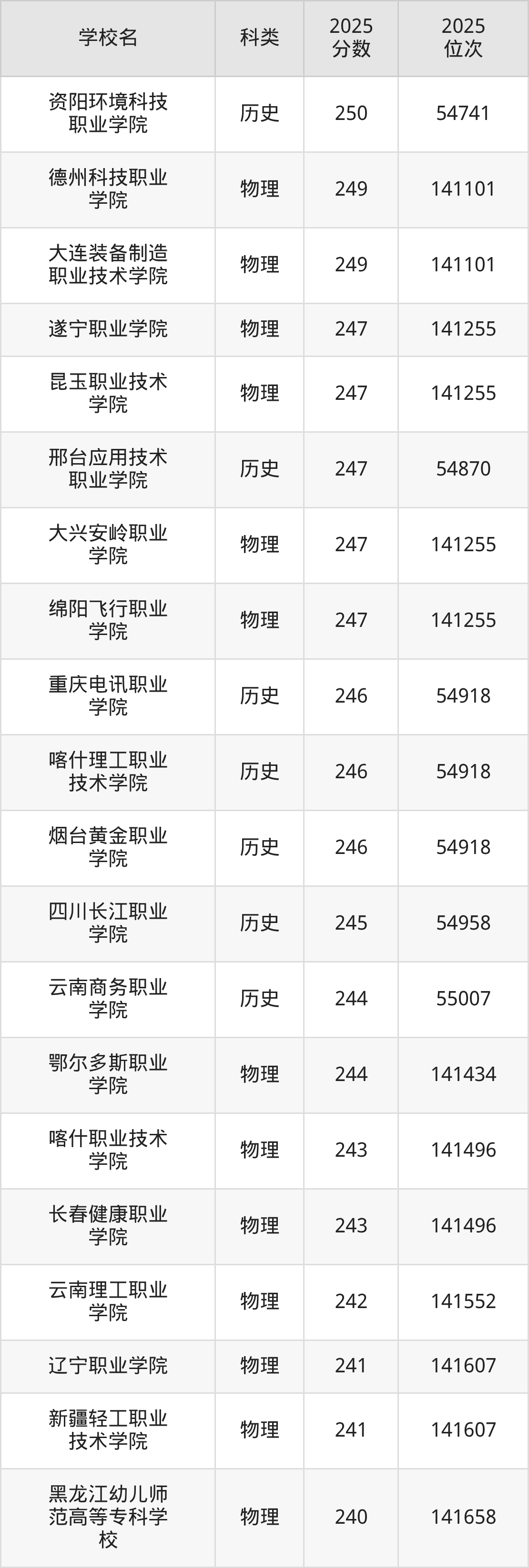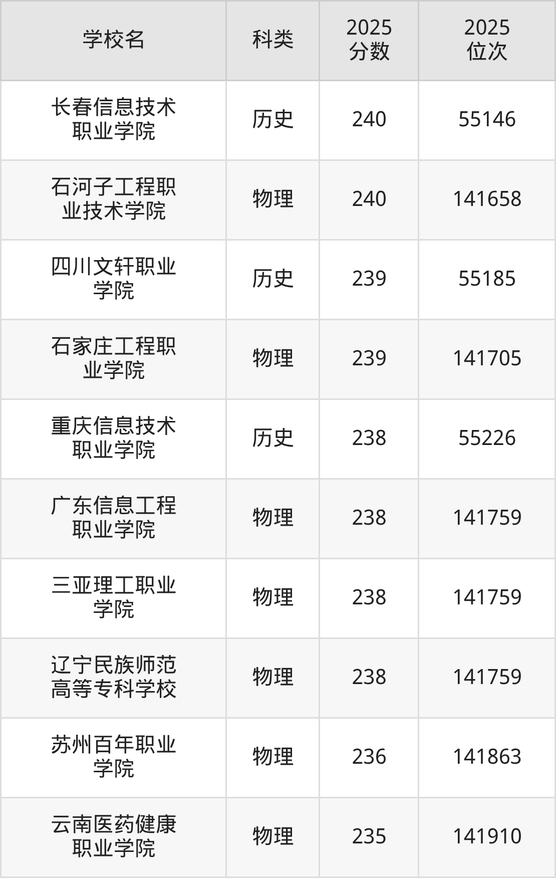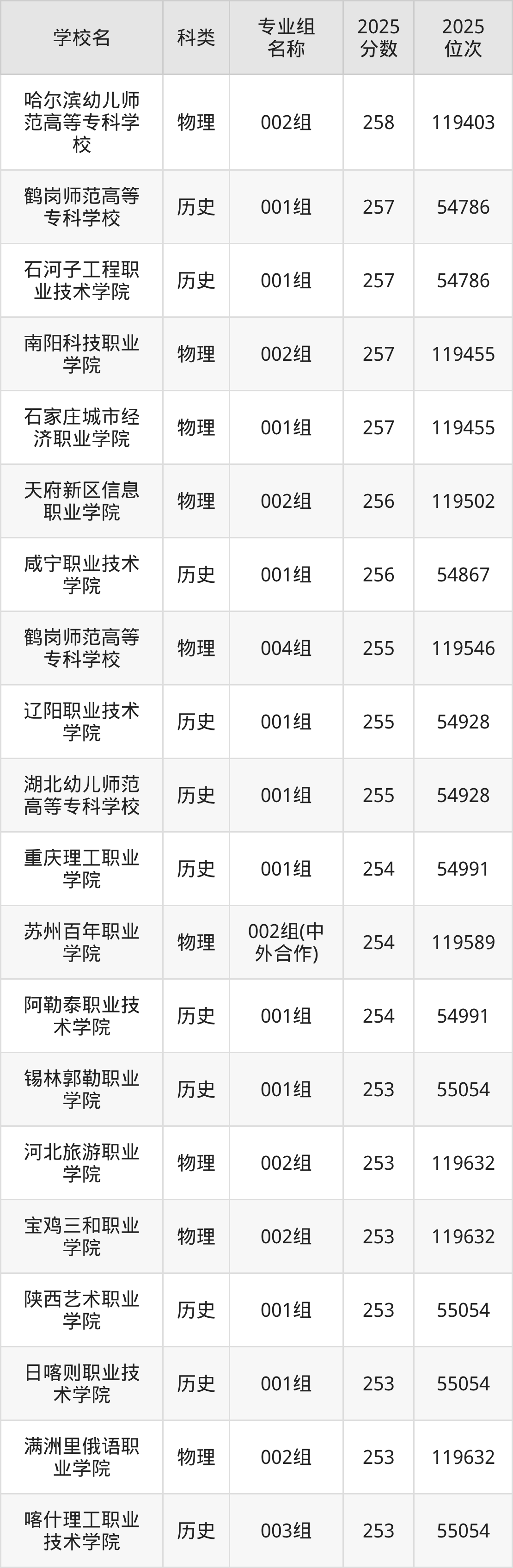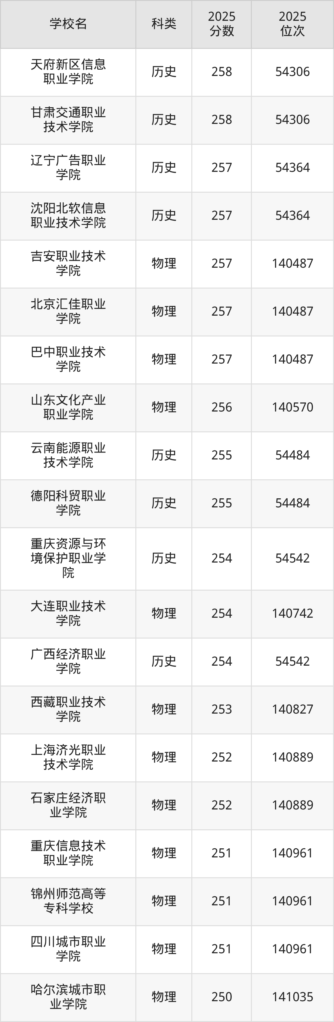 本文将收集各省258分能上的专科学校位次排名表(不含特殊招生计划、中外合作、分校区等),以供2026届考生参考。