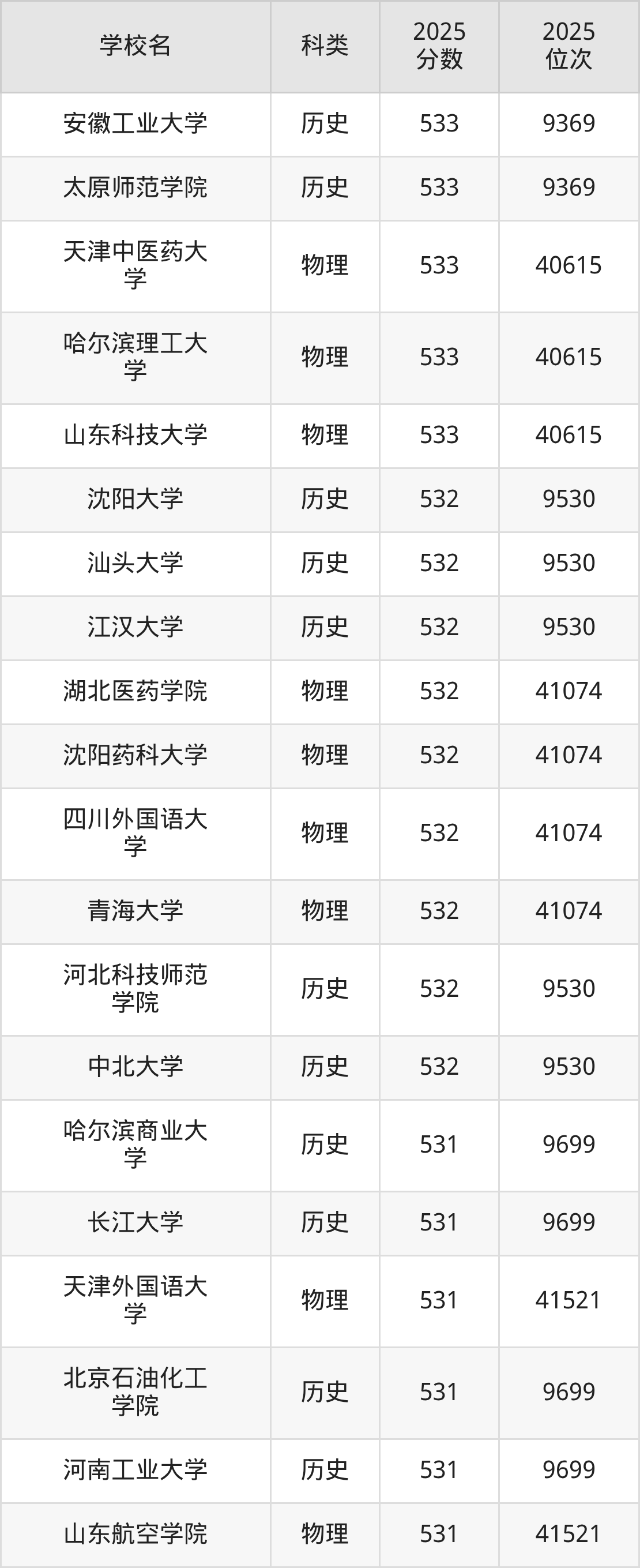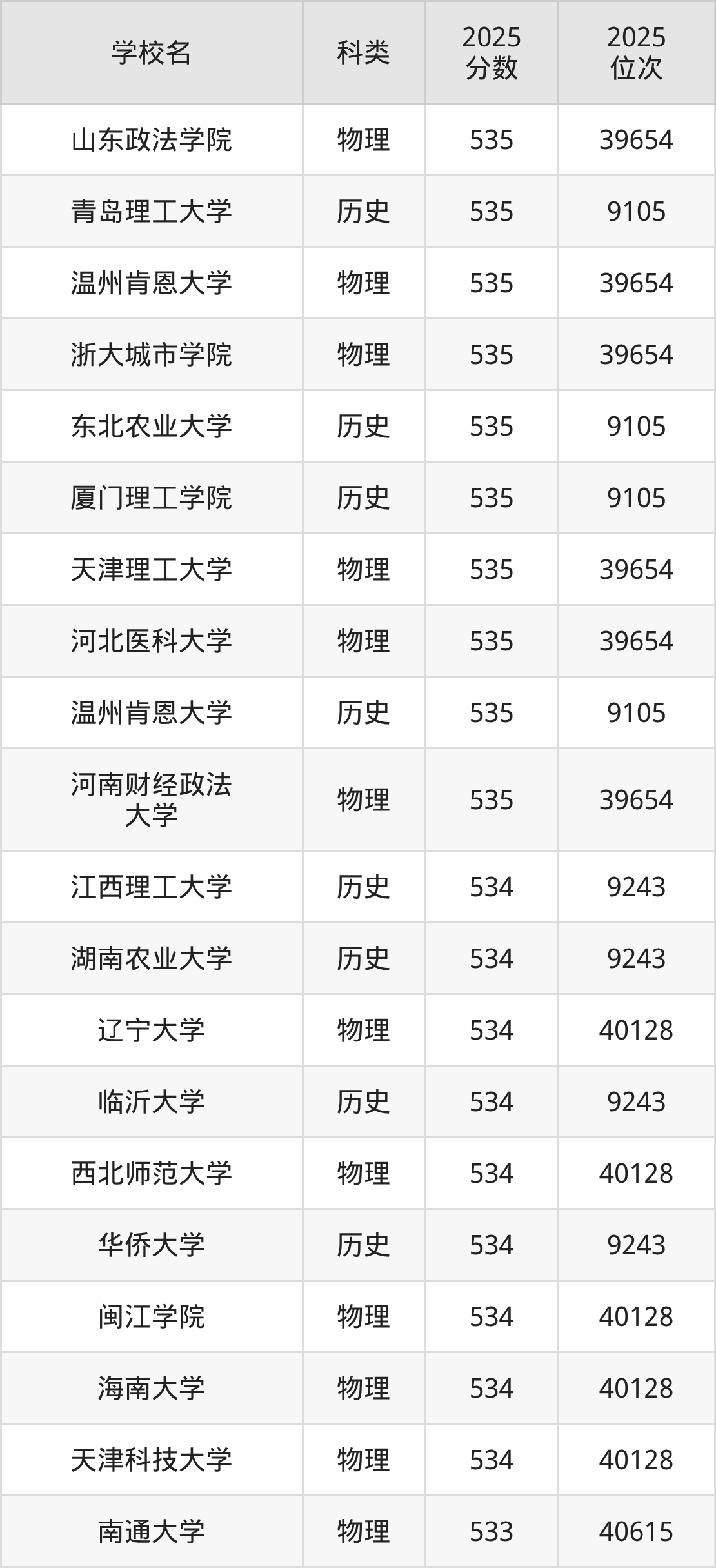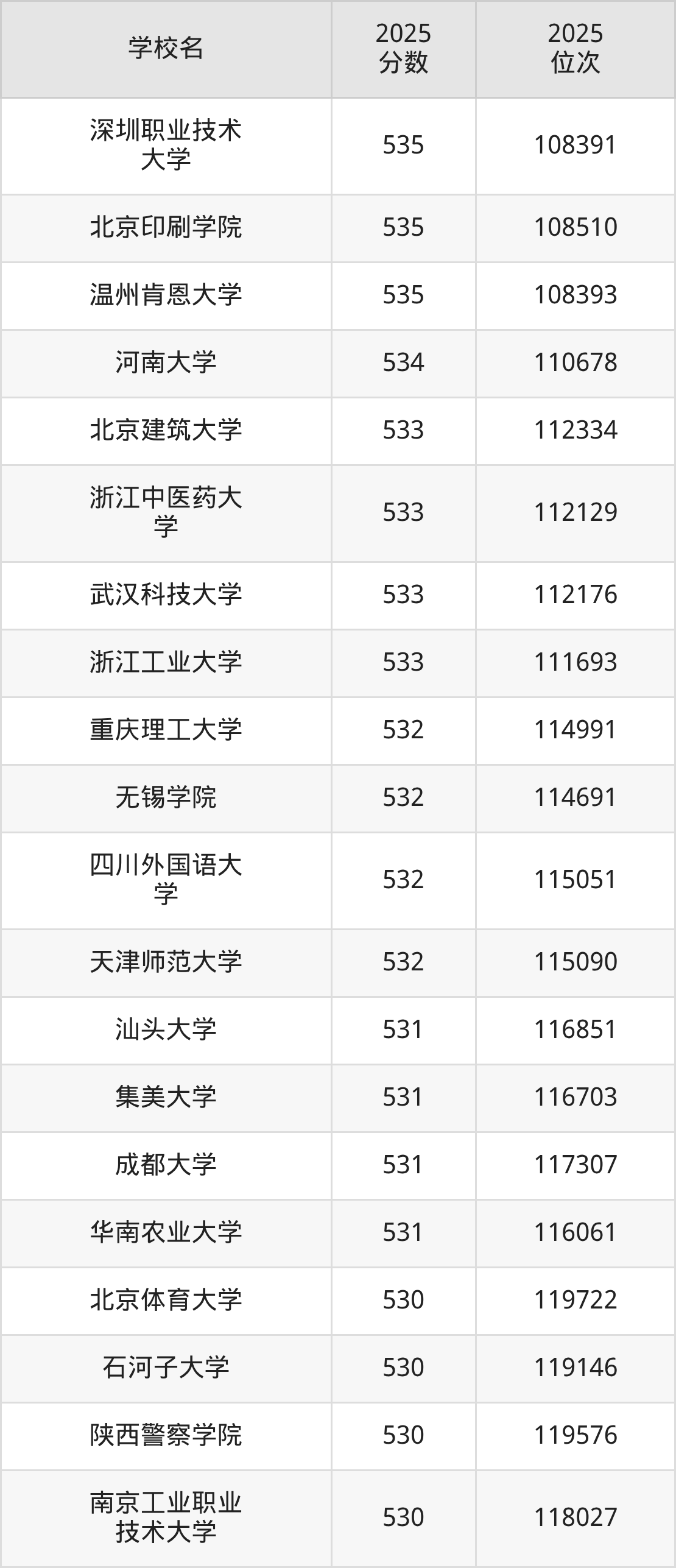 本文将收集各省535分能上的本科大学位次排名表(不含特殊招生计划、中外合作、分校区等),以供2026届考生参考。