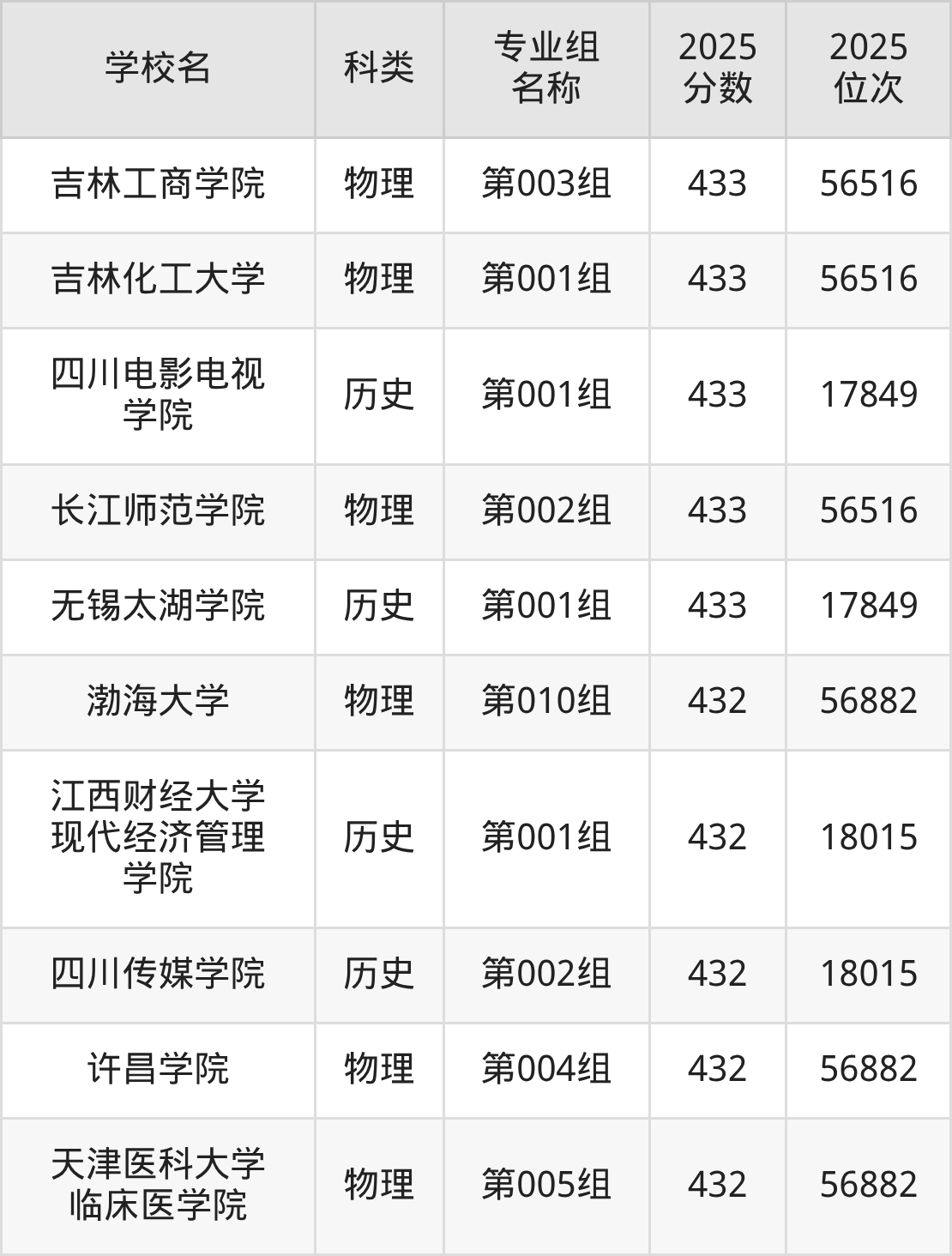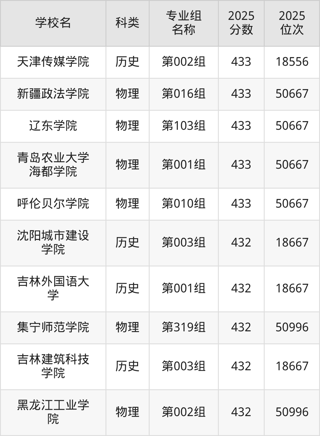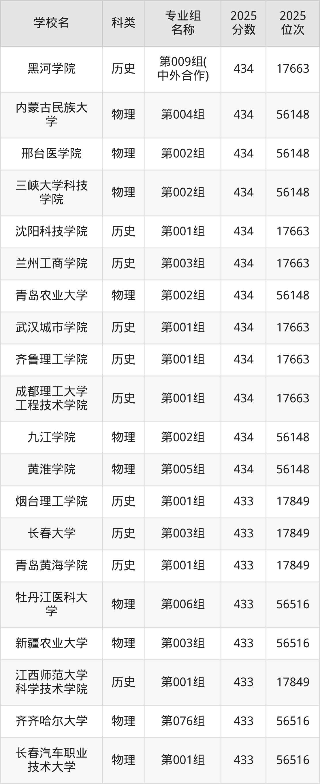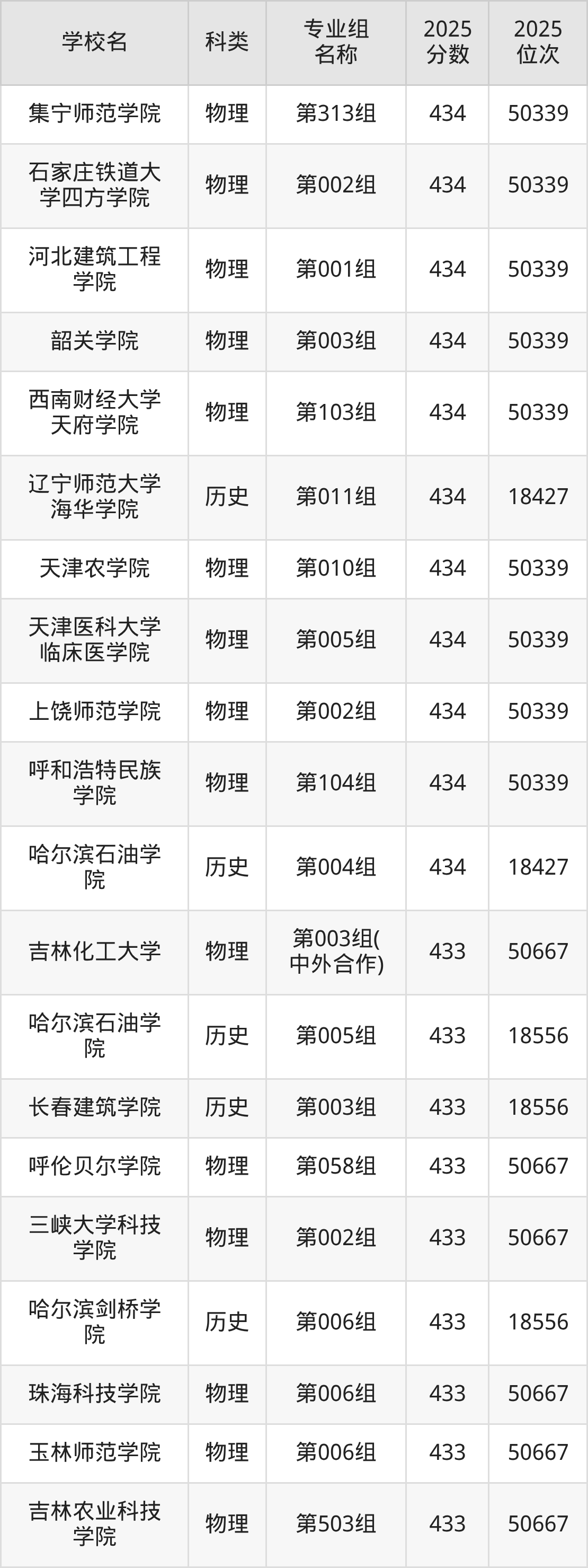 除上述院校外,435分可上的公办本科大学还有内蒙古农业大学(第113组427分,位次52652名)、河北工业职业技术大学(第003组423分,位次53969名)。