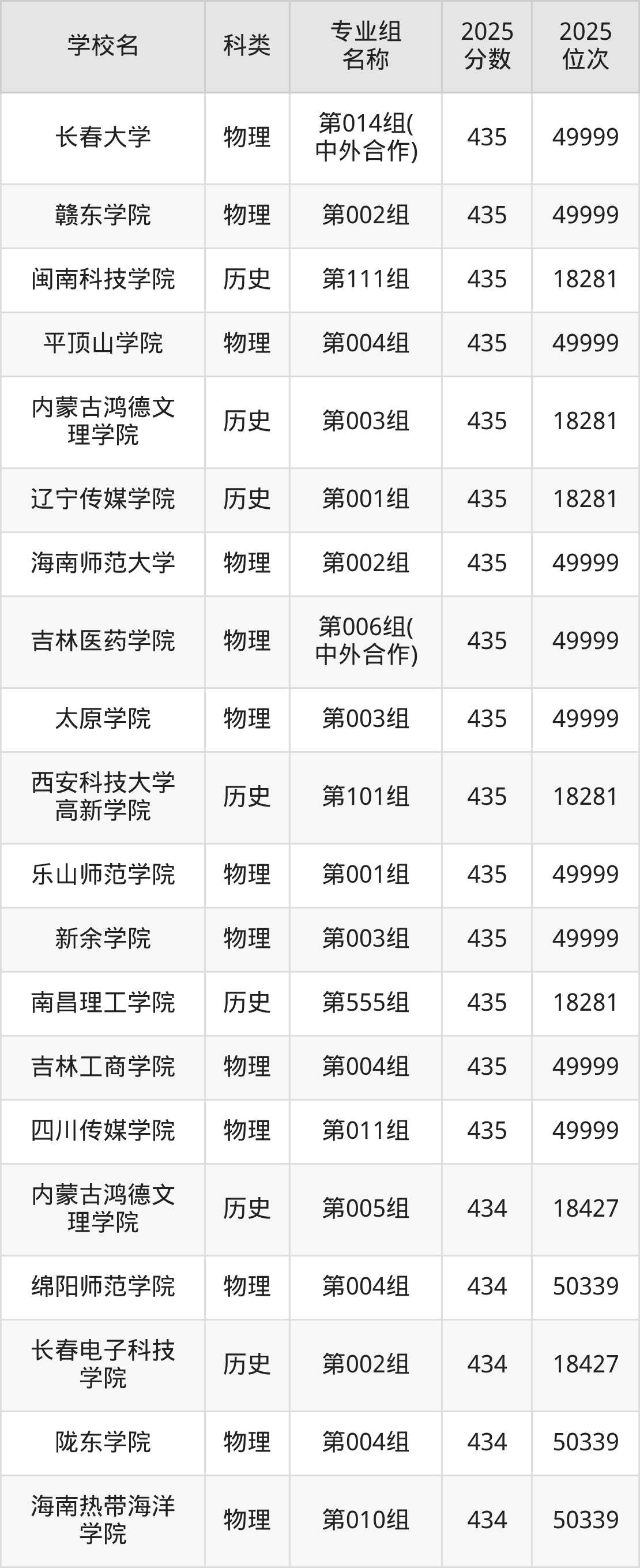 本文将收集各省435分能上的本科大学位次排名表(不含特殊招生计划、中外合作、分校区等),以供2026届考生参考。