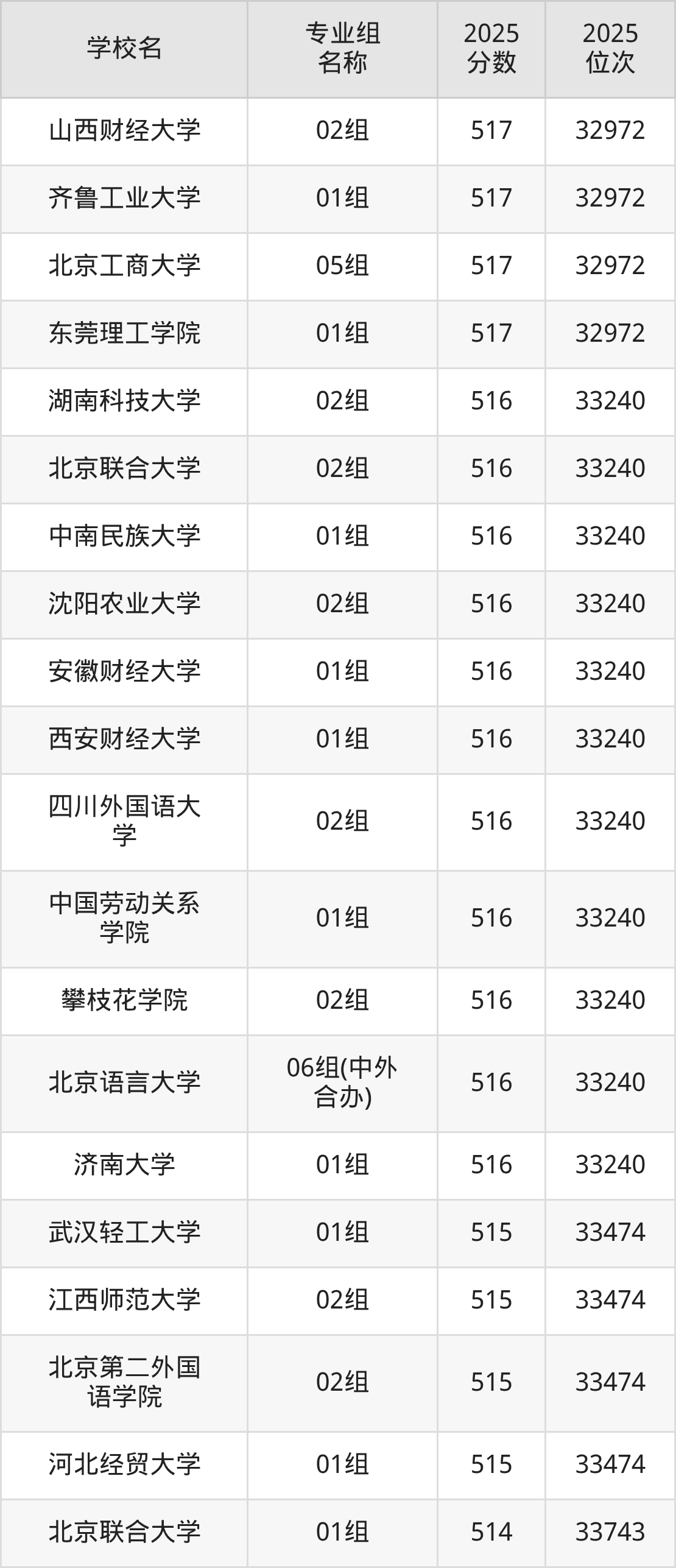 除上述院校外,519分可上的公办本科大学还有广东财经大学(01组512分,位次34272名)、广东工业大学(03组(中外合办)503分,位次36716名)。