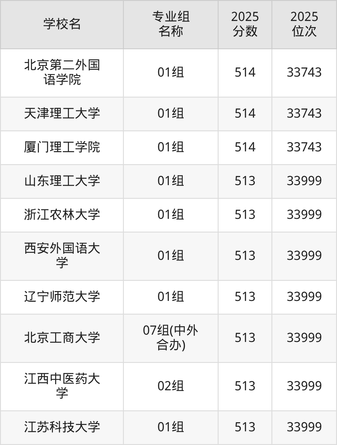 而位次最低的民办院校有北京科技大学天津学院(04组)、北京工业大学耿丹学院(01组)、沧州交通学院(02组)、北京城市学院(06组),分数为430分,对应最低位次排名为53994名。
